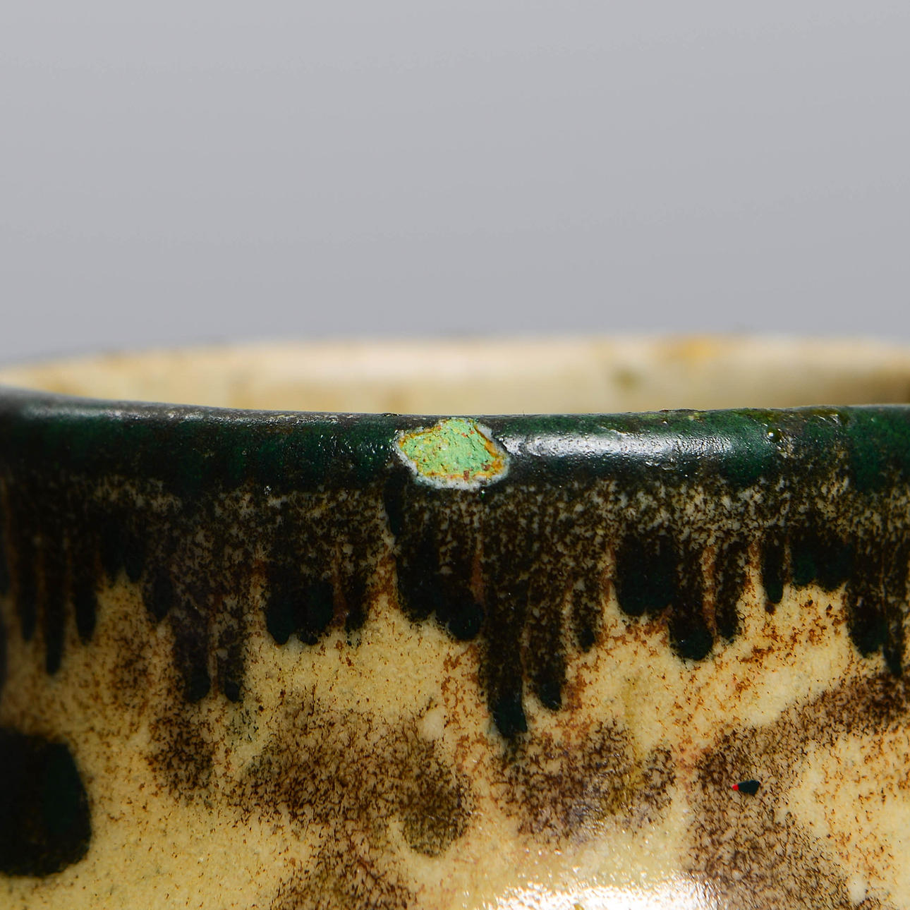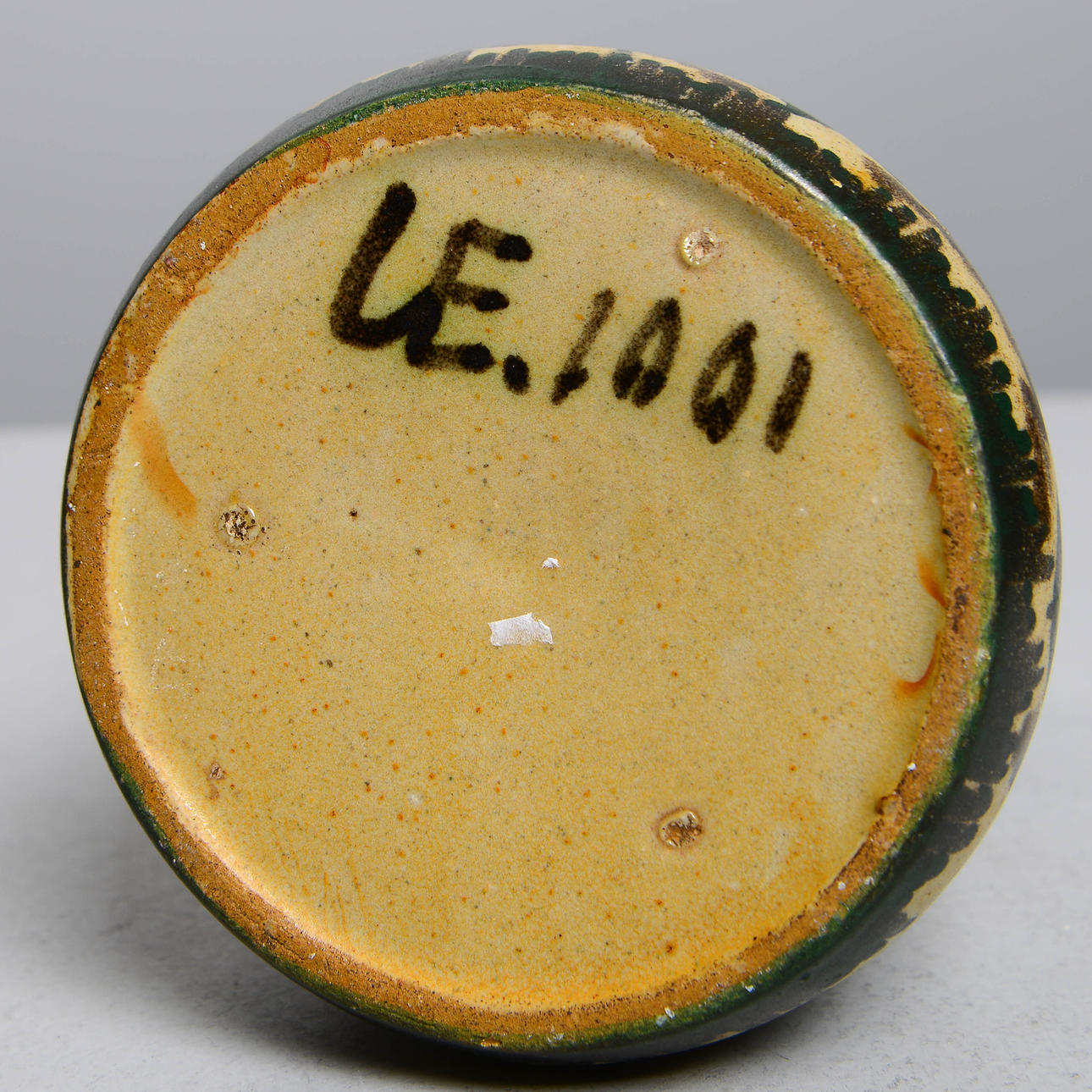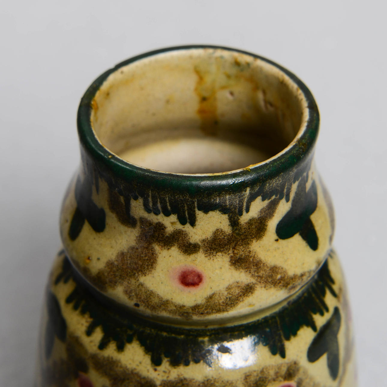 Lergods med målad dekor. Höjd 18,5 cm.