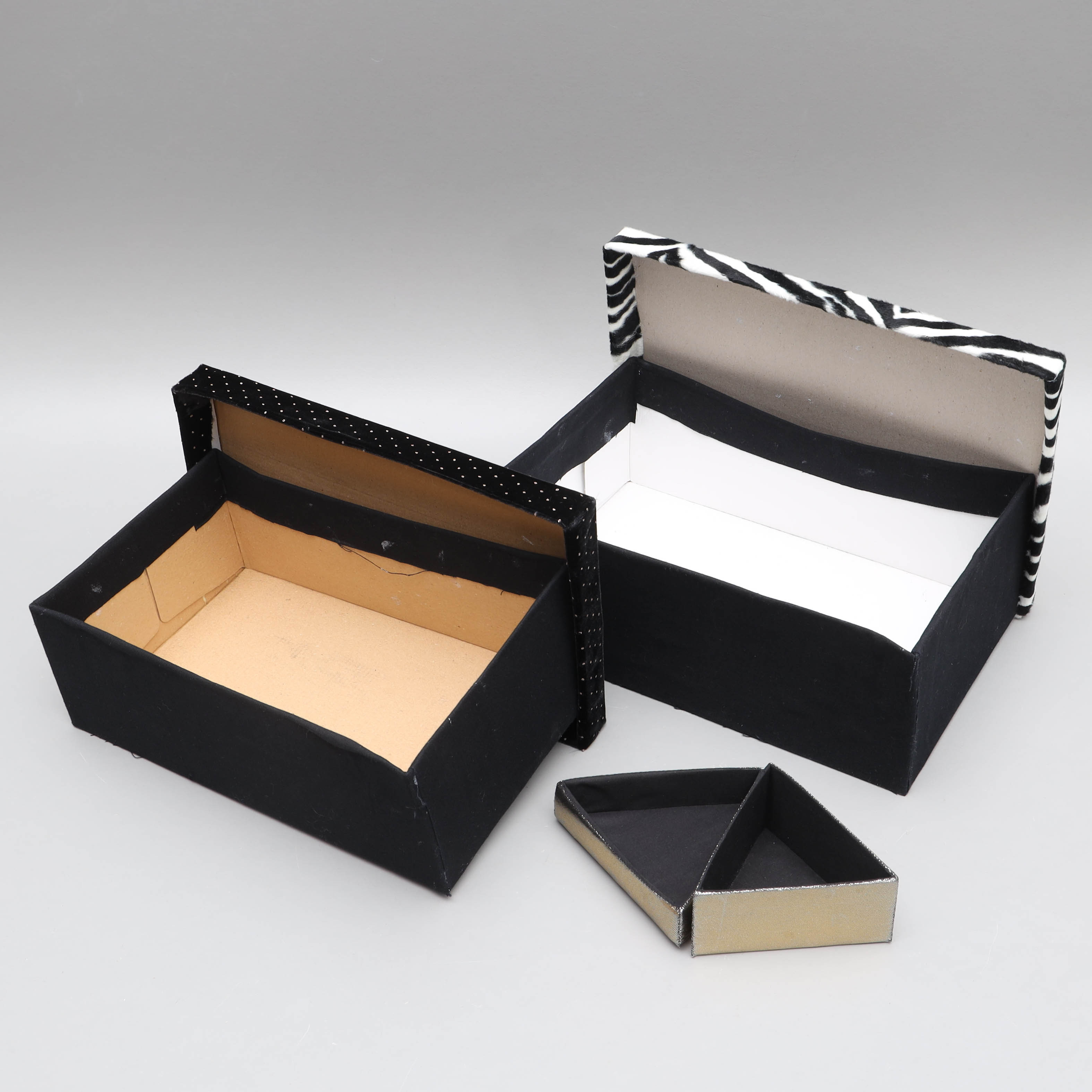 4924535. SMÅFÖRVARING, 13 delar, askar klädd i textil.