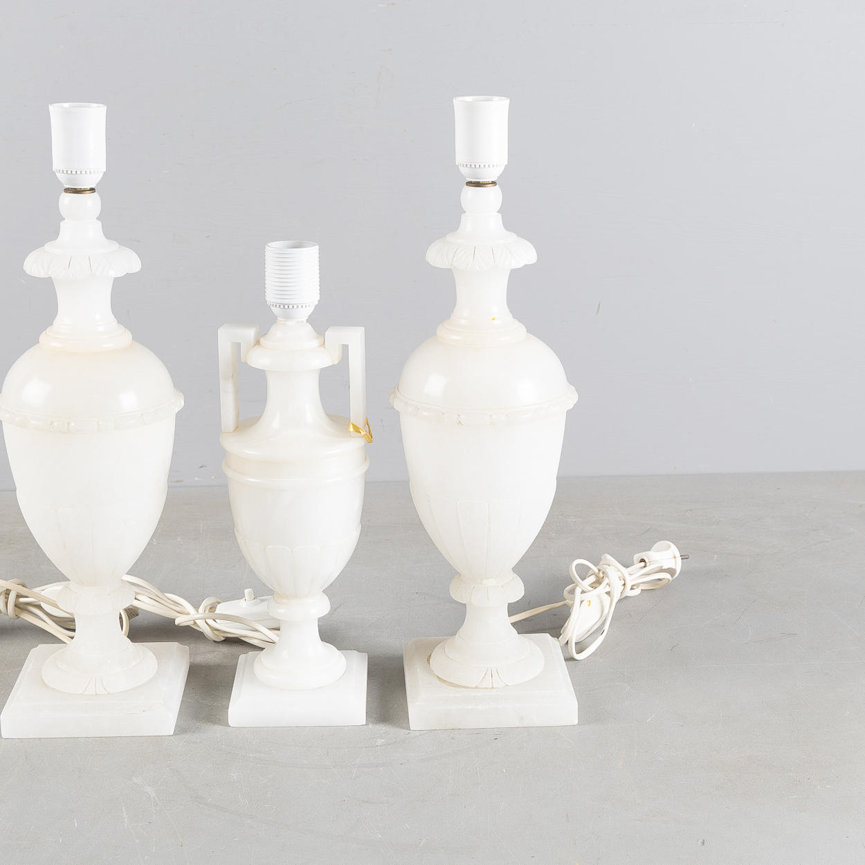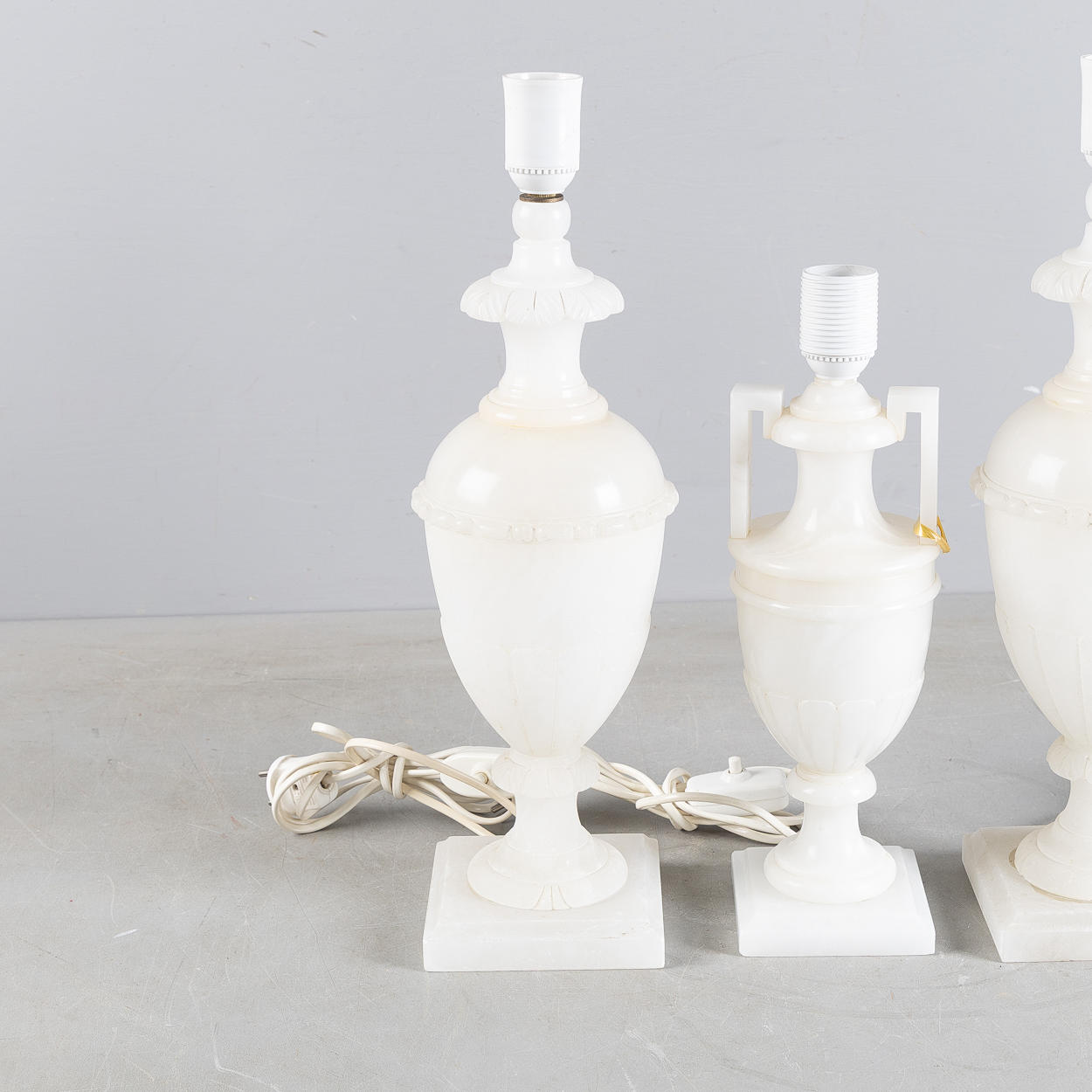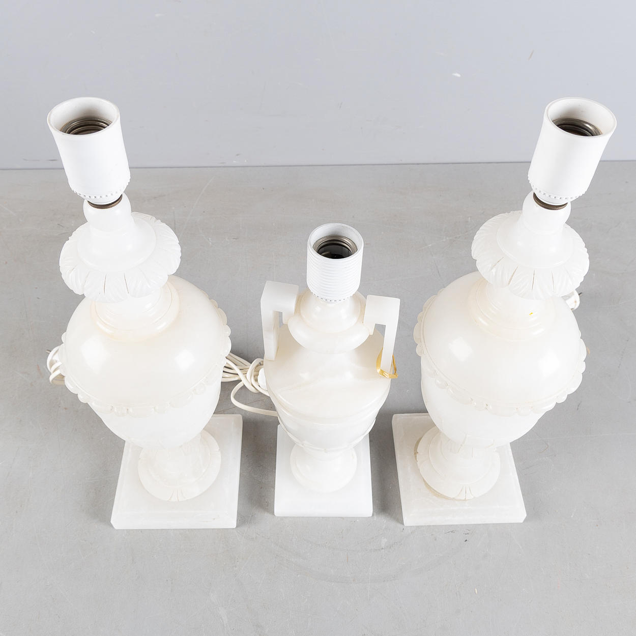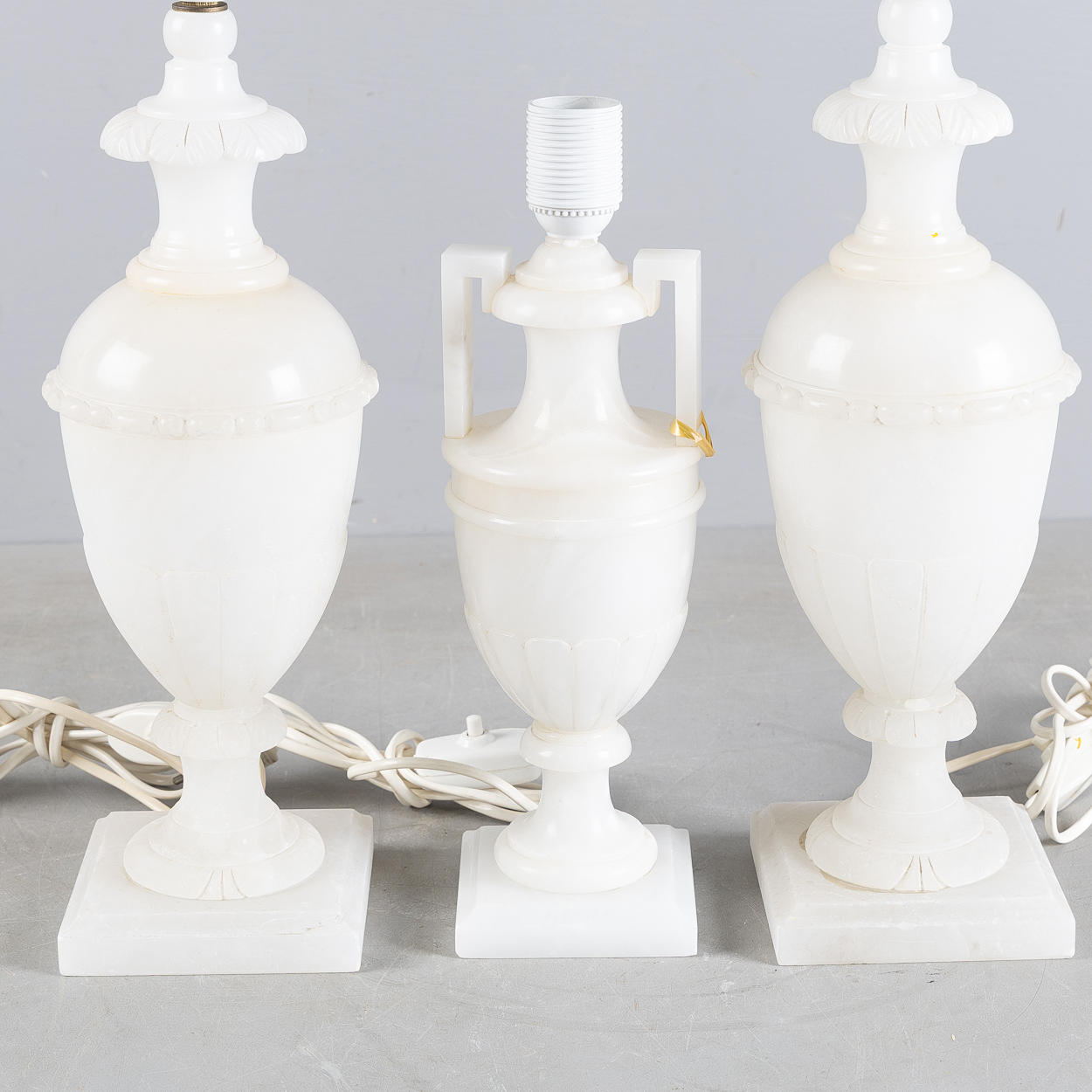 4924824. BORDSLAMPOR, 3 stycken, alabaster, 1900-talets andra hälft.