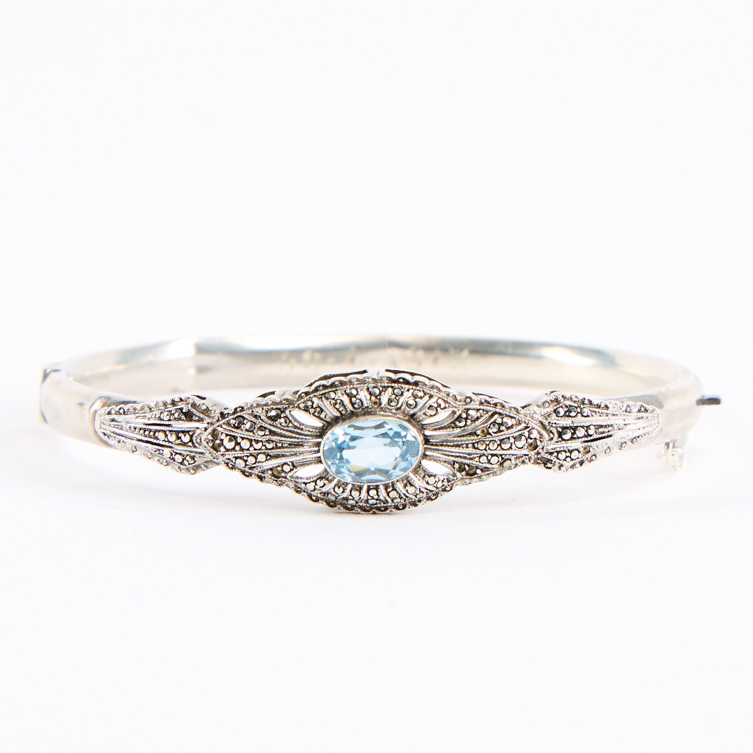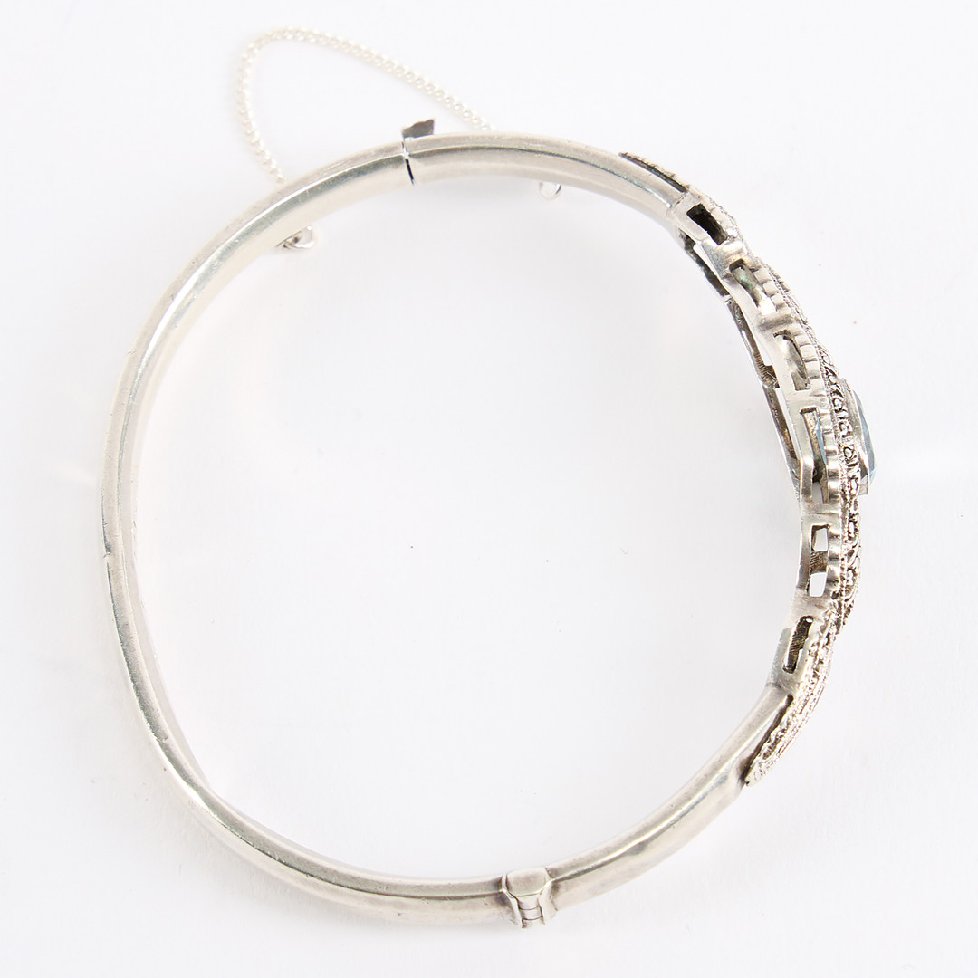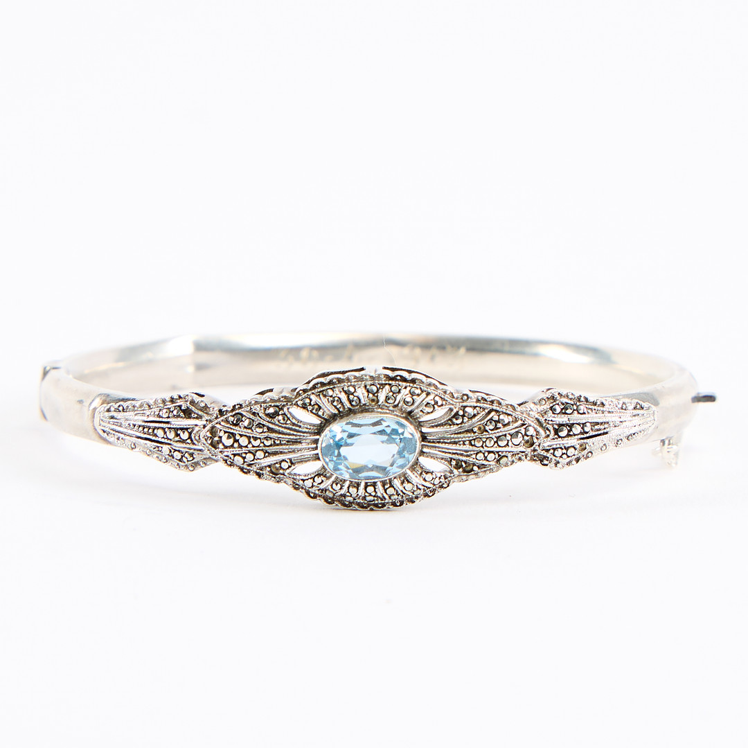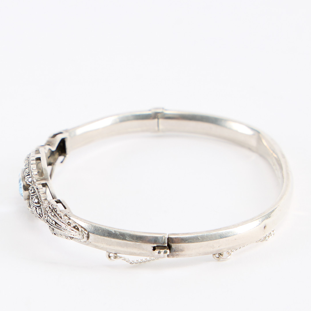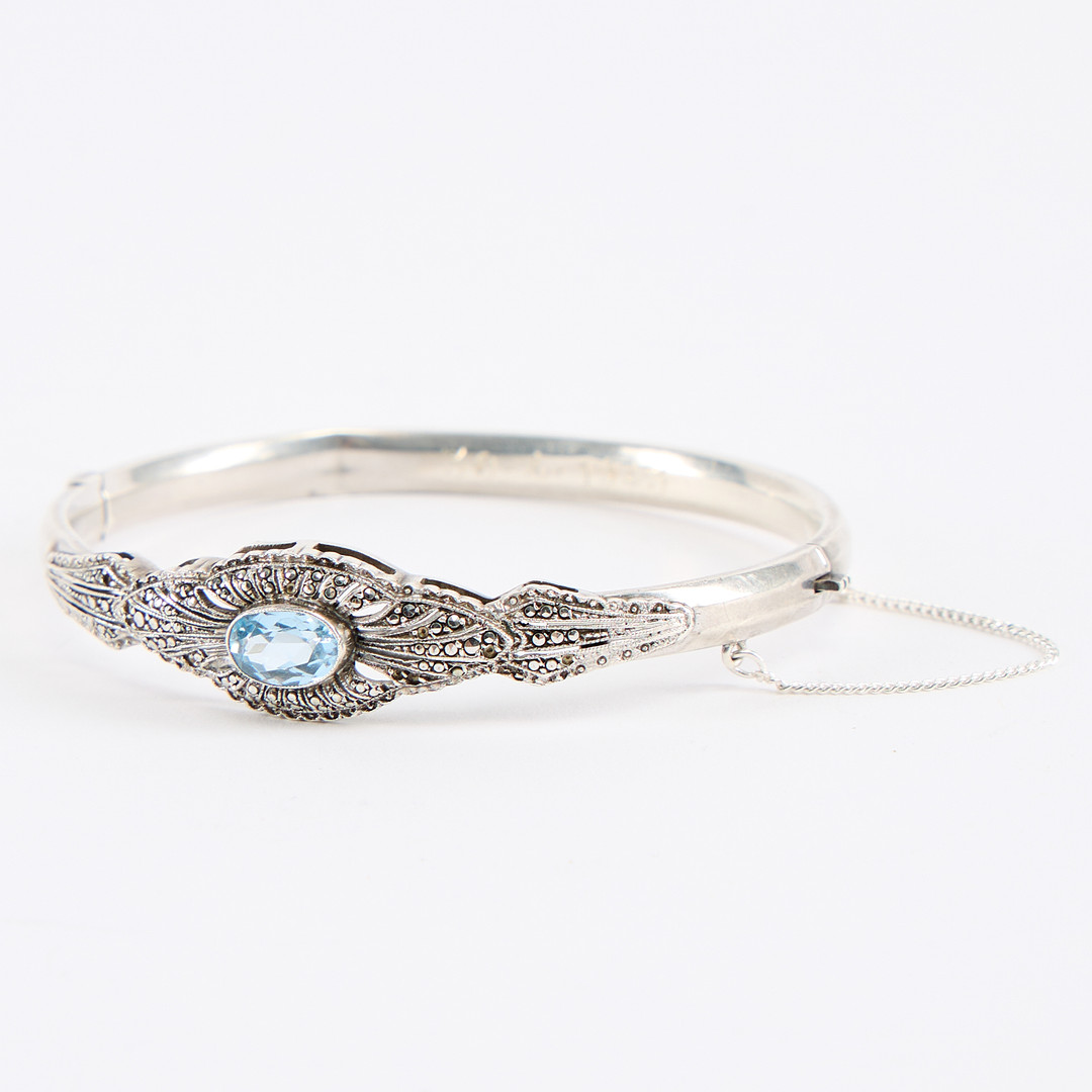 4925083. ARMRING, silver med blå sten.