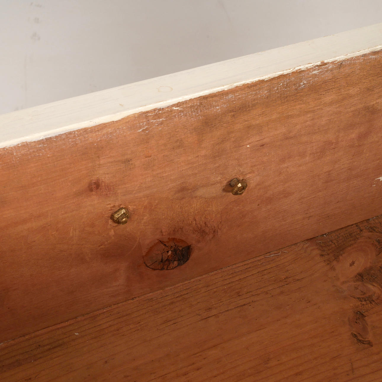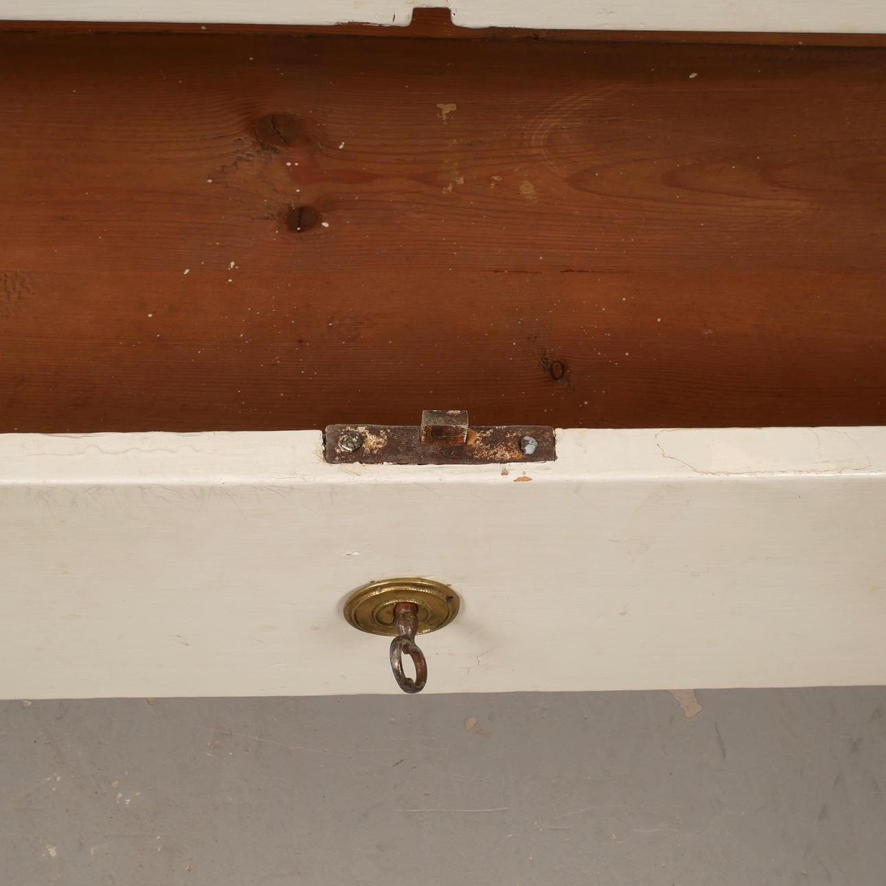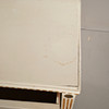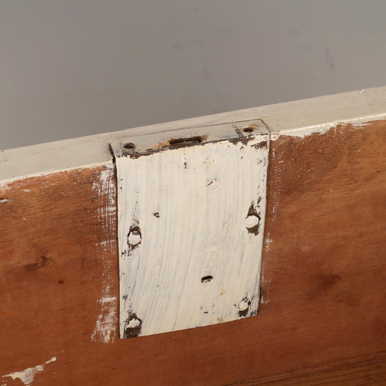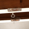 Nedre lås fungerande med lös nyckelskylt. Mellanlåda med lås och nyckel som sitter fast. Övre lådan utan nyckel. Senare bemålning. Skiva med fläck/märke. Något maskstungen baksida.