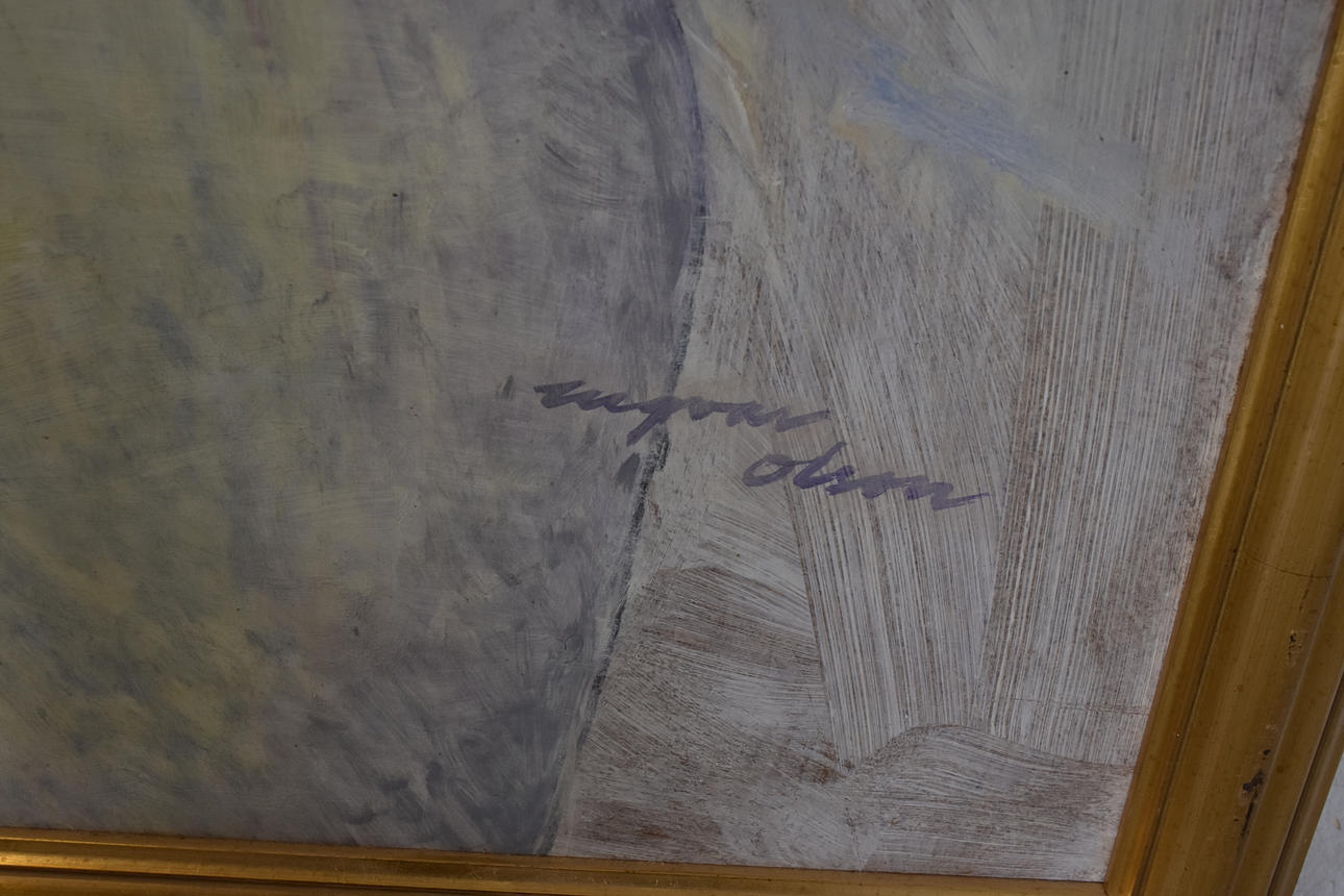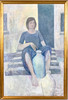 Sittande kvinna med kruka. Signerad 120x80 cm