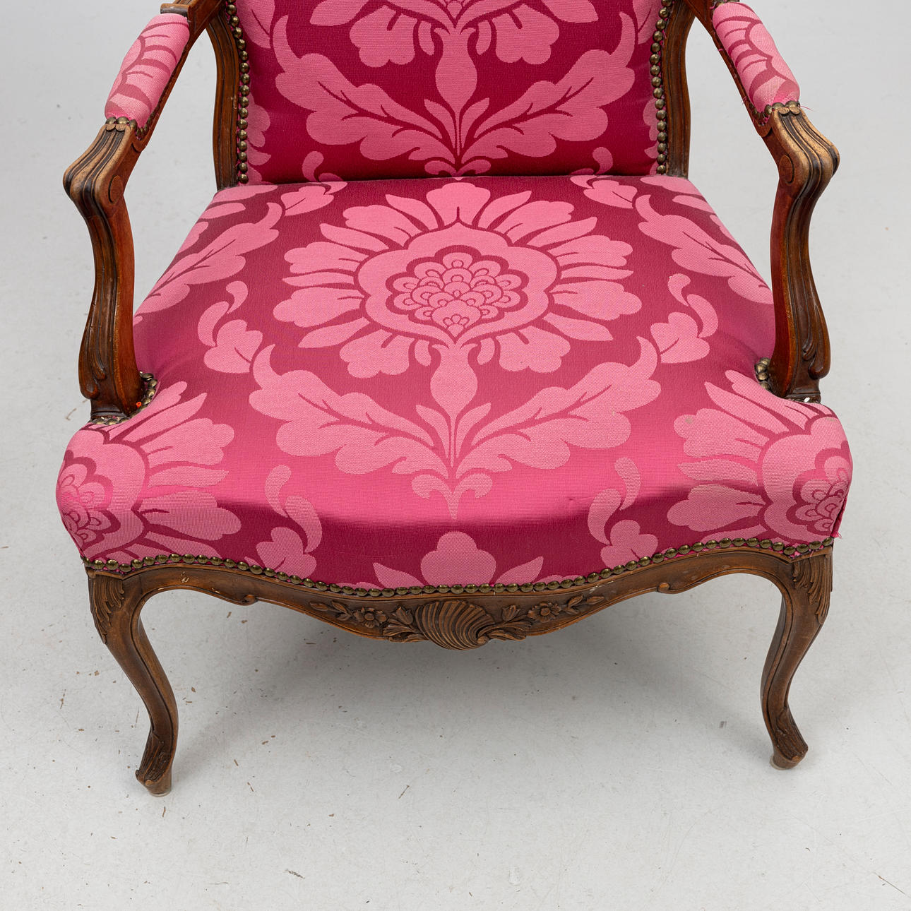 Rosa klädsel. Bredd ca 65, sitthöjd 42, totalhöjd 97 cm.