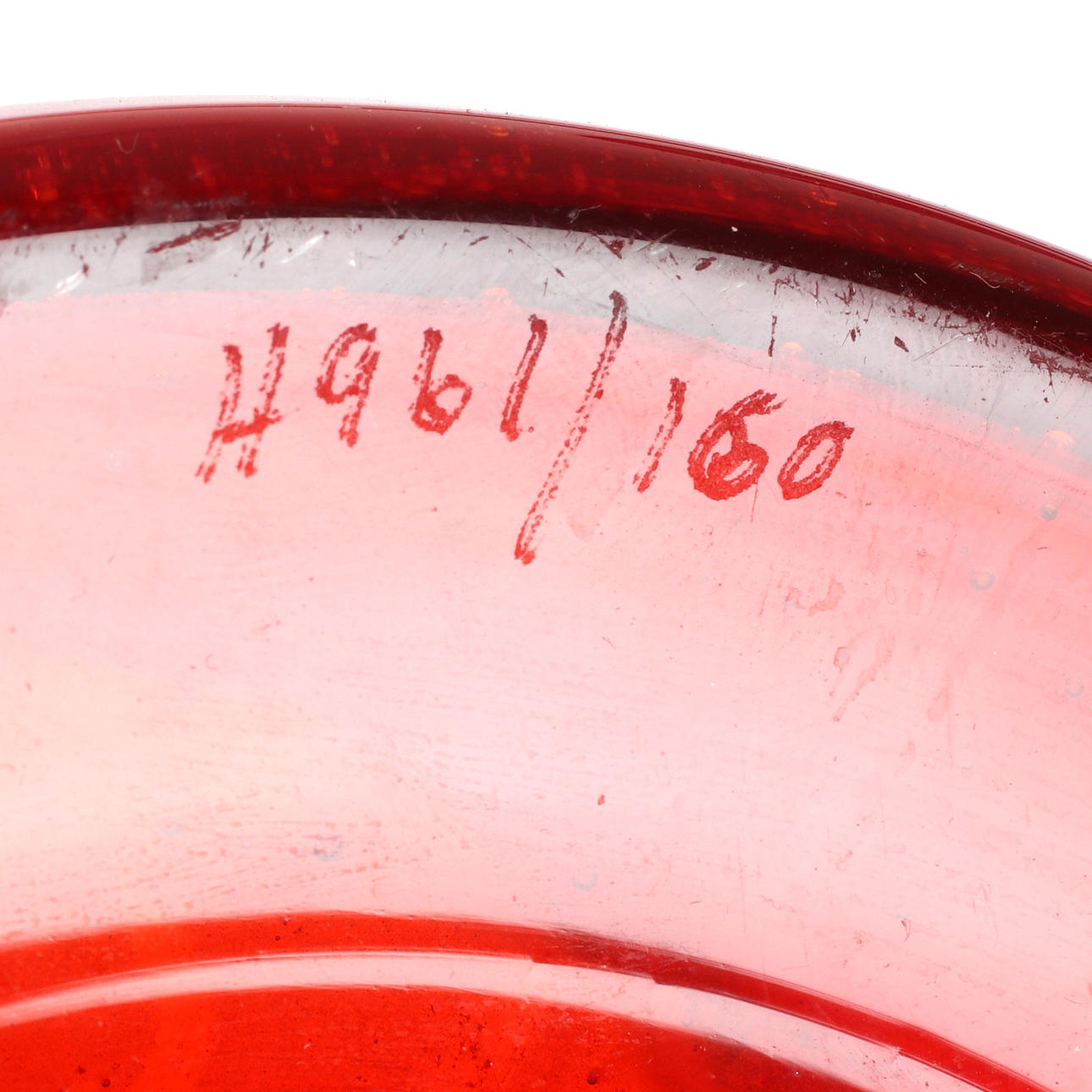 Röd glasmassa, märkt H961/160, höjd ca 16,5 cm.