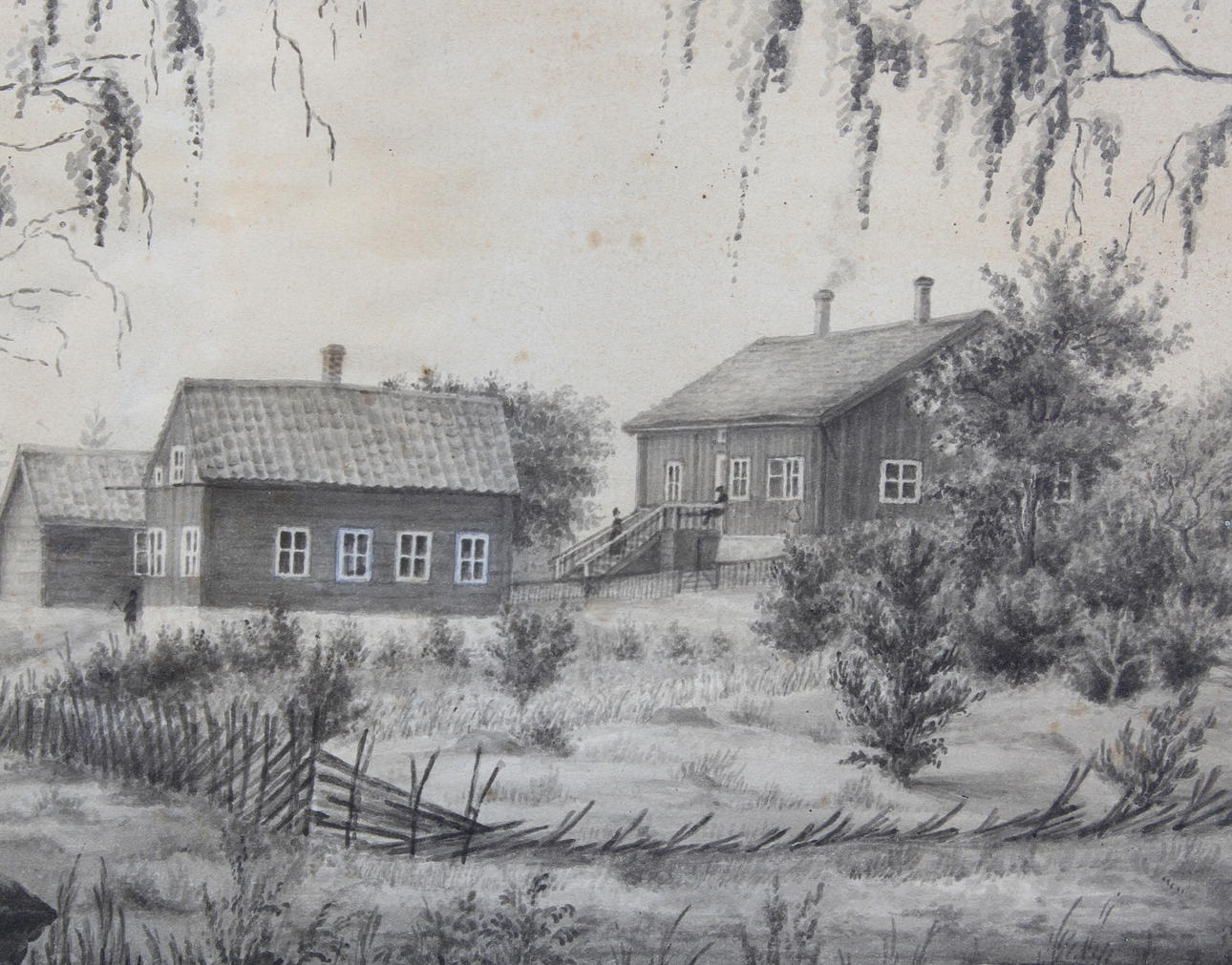 Gårds samt Kyrkmotiv, det ena signerat och daterat G.W Thavenius.