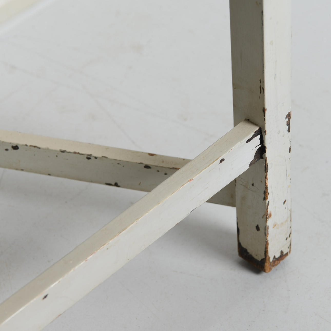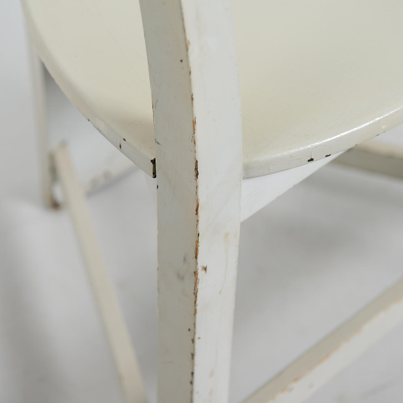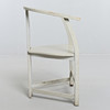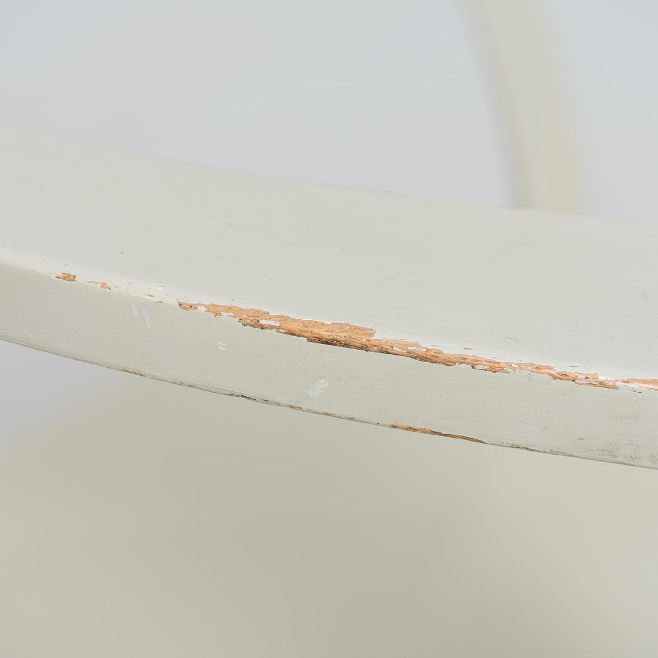 Bemålat trä och skuren dekor på rygg. Sitthöjd 46 cm. Rygghöjd 85 cm. Bredd 64 cm.