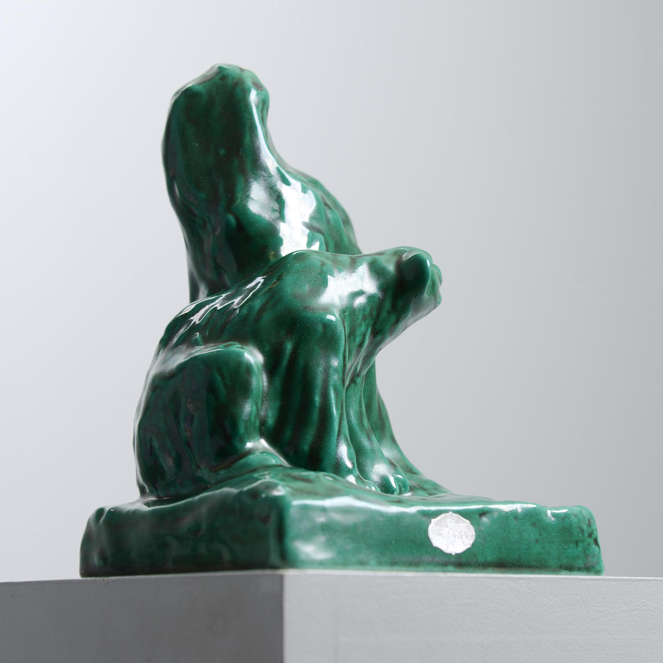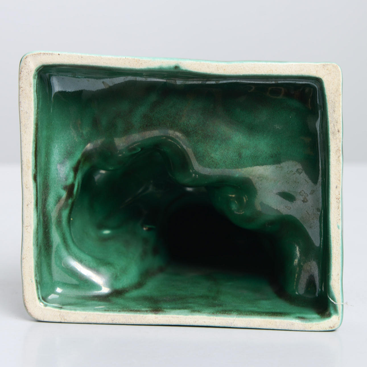 Bakgrund: Greta Runeborg (1911-1989) var på Upsala-Ekeby den period som fabriken, under Sven Erik Skawonius konstnärliga ledning, förberedde sitt deltagande på världsutställningen i New York 1939. Flera av hennes vaser, fat och skålar, formgivna just för att ansluta till den nya svenska stilen Swedish Modern som lanserades där, blev också utställda i New York. Till exempel hennes kända golvvas från 1938-39, som tillverkades med många olika dekorer och glasyrer ända in på 50-talet, långt efter Greta Runeborg lämnade Upsala-Ekeby 1941. Med uppsvinget för Swedish Modern på senare år har Greta Runeborgs organiska, rena former mötts av även ett internationellt intresse.