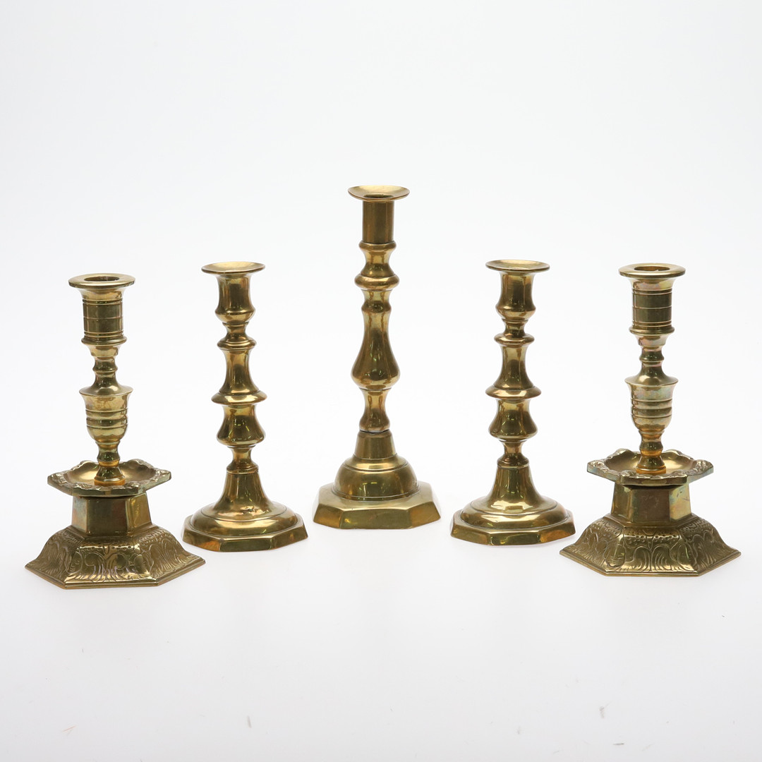 4928834. LJUSSTAKAR, 5 st, mässing.