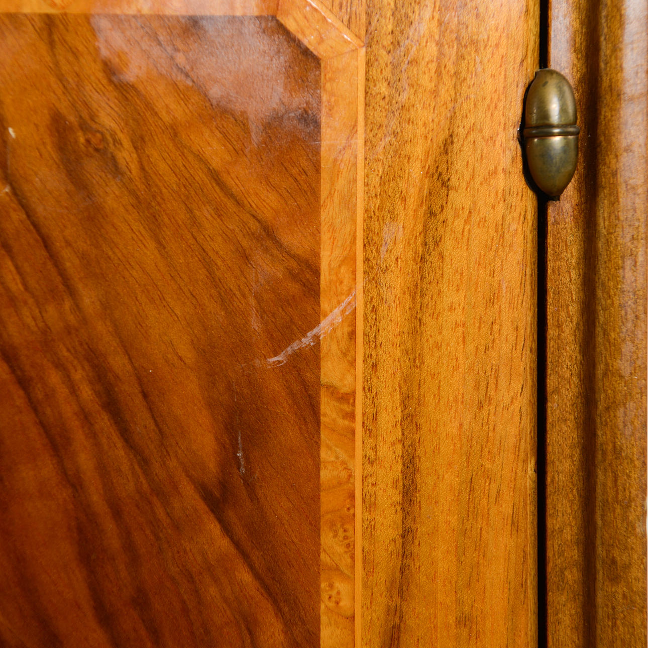Bruksslitage. Torrsprickor i faner samt repor på skåpets utsida.