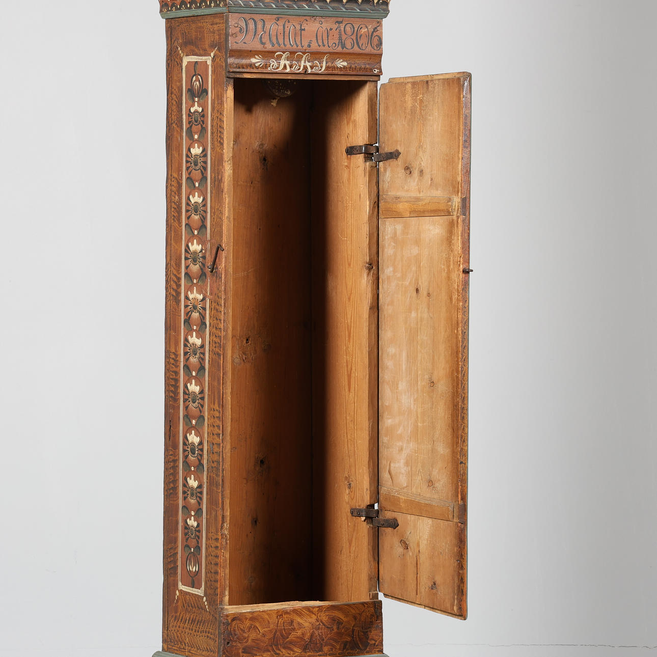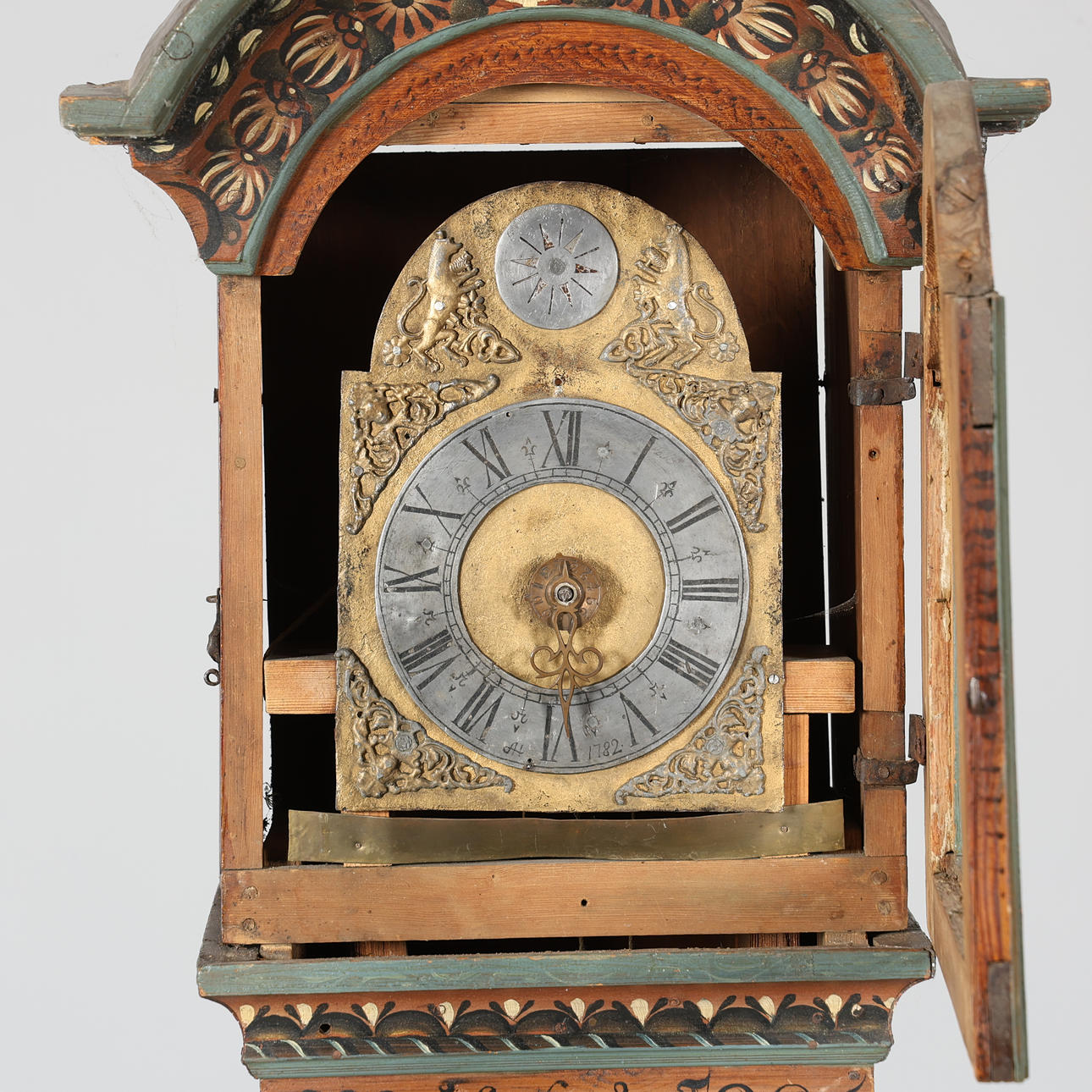 Bruks- och åldersrelaterat slitage. Lod och pendel saknas. 1 visare till urtavla saknas. Sprickor.