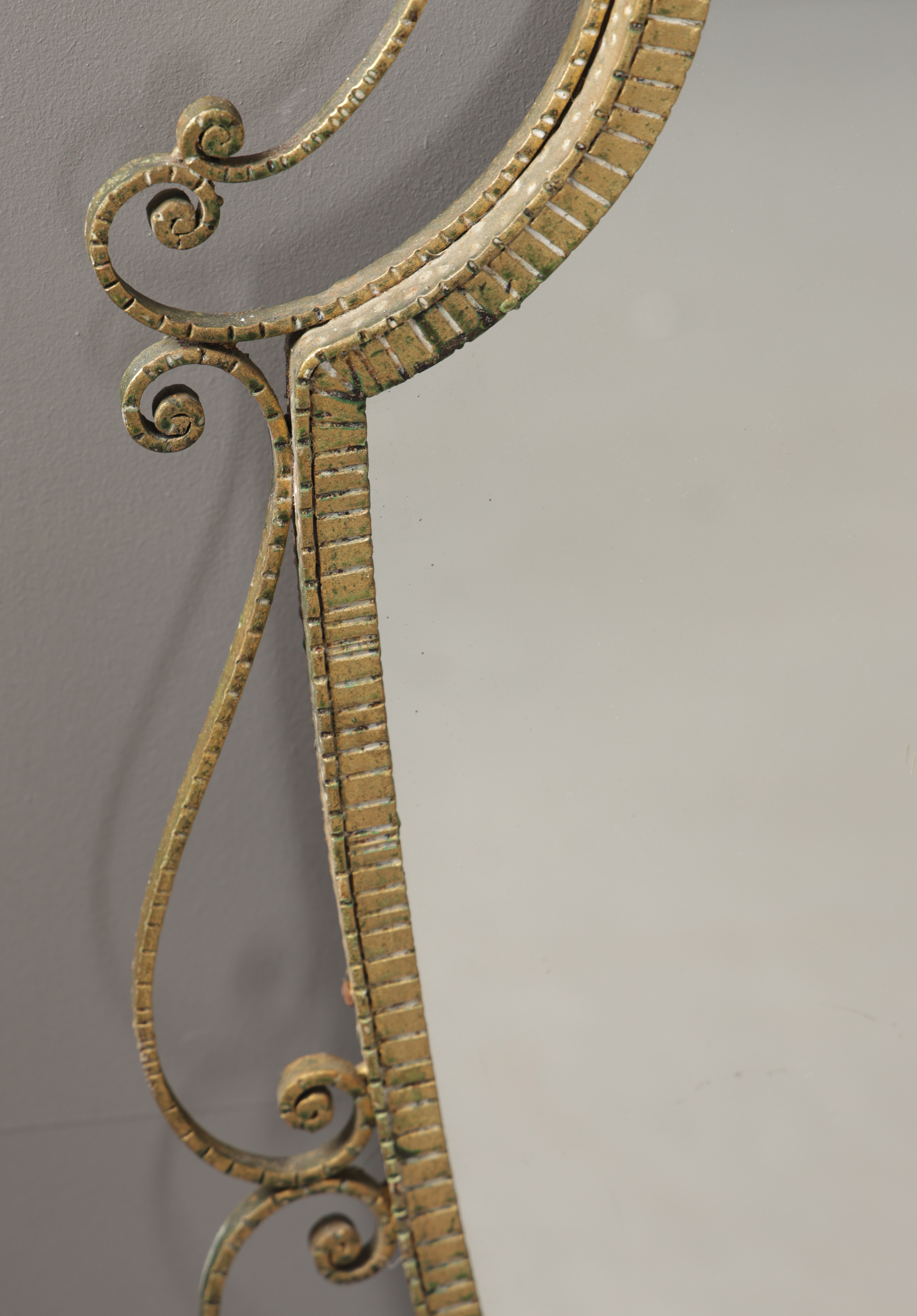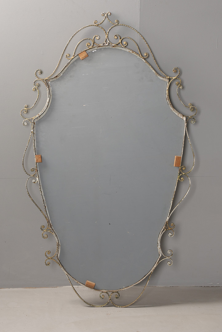 4932186. EN STOR FÖRGYLLD METALLVÄGGSPEGEL.