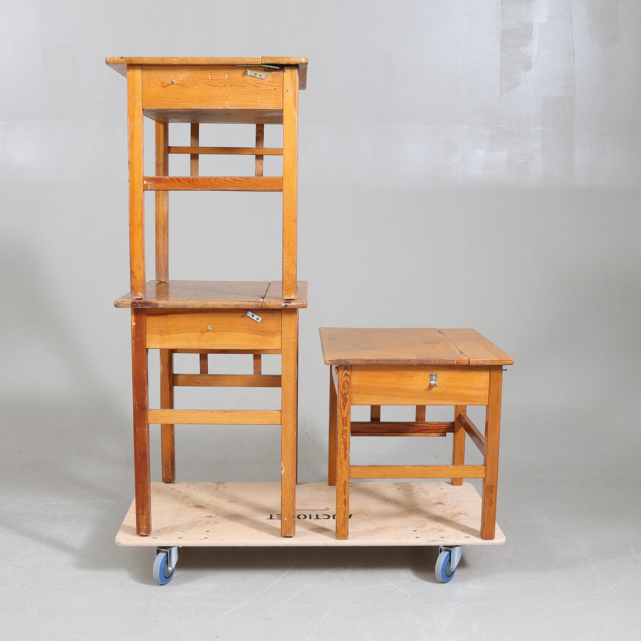 Bänkarnas bredd ca 65 cm. Djup ca 55 cm. Höjd ca 57-73 cm.