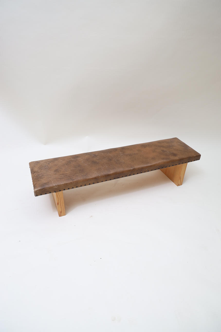 Läderimiterad nitad klädsel. Stomme i lackad furu.