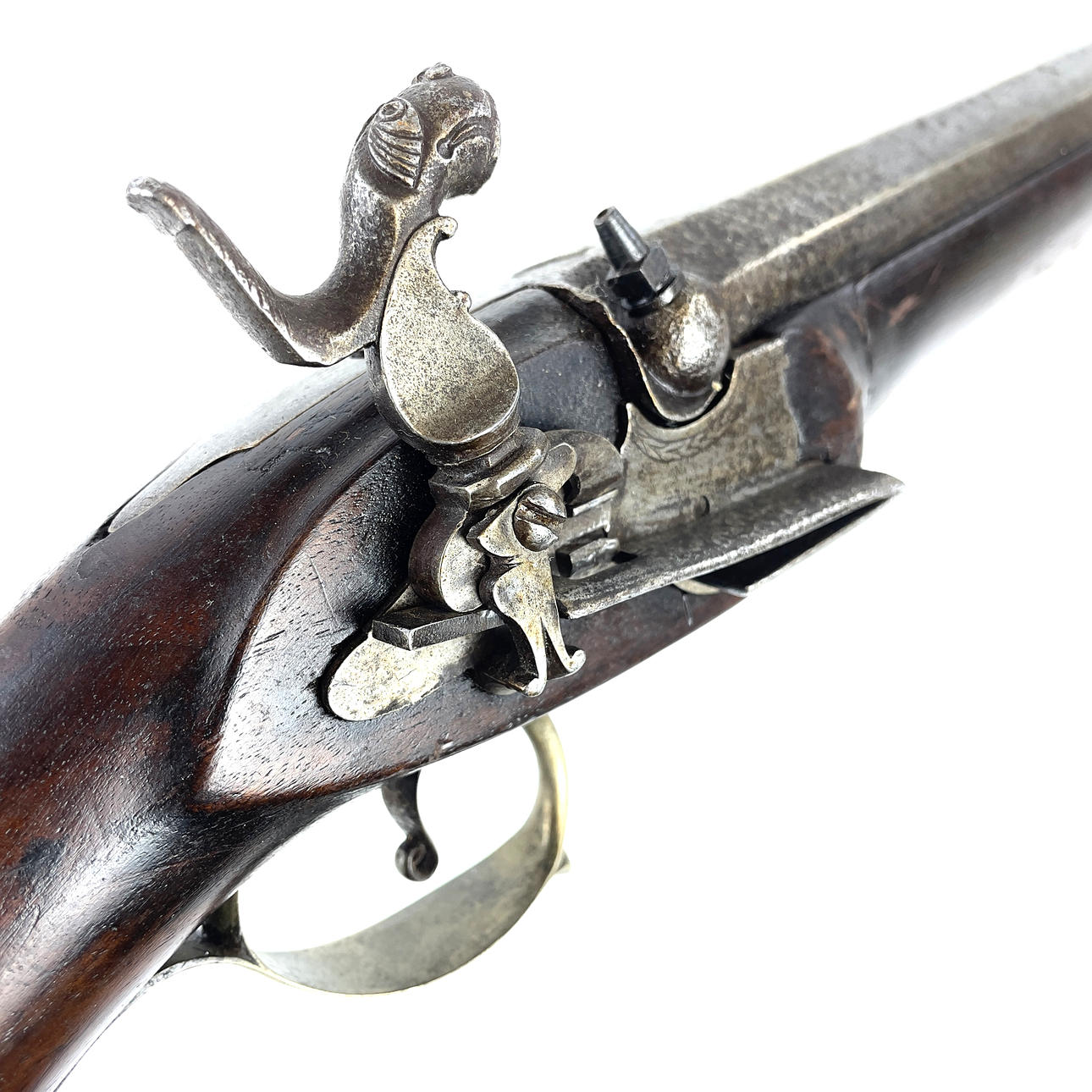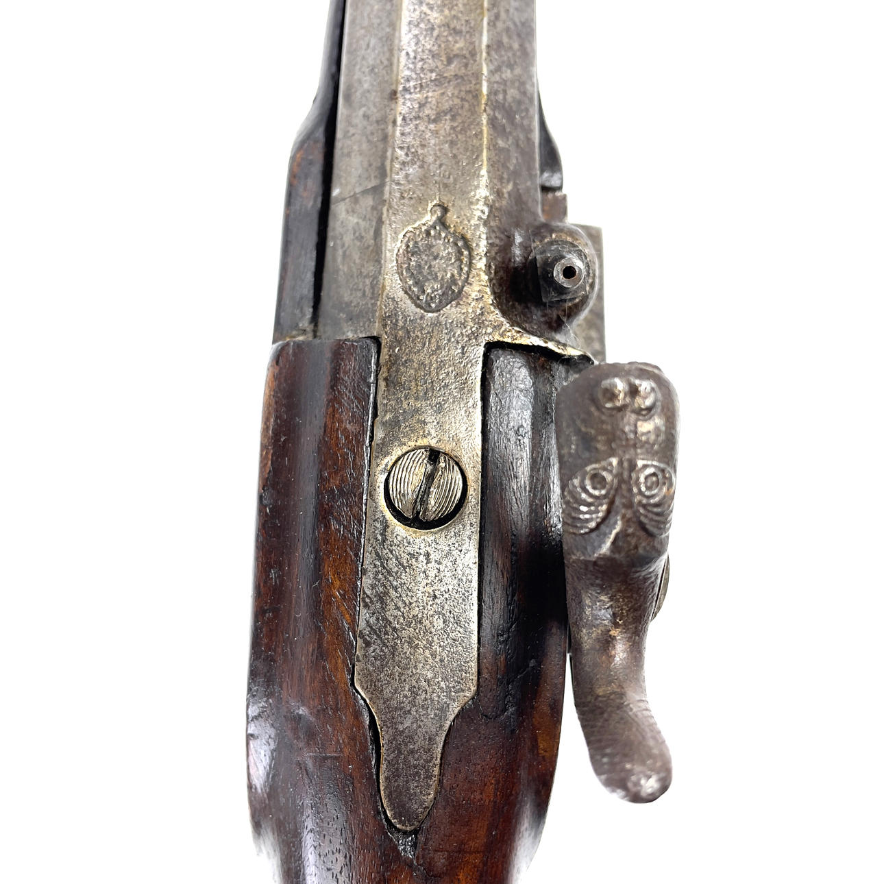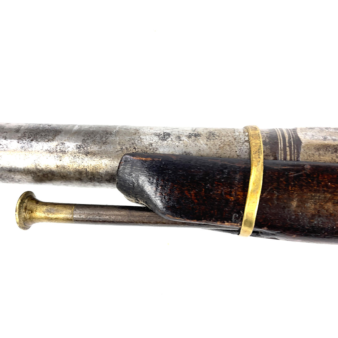 Skuren dekor på stocken, ladd pinne, pipans inne diameter ca 20 mm, pipans ytter diameter ca24 cm. total längd ca 125 cm.