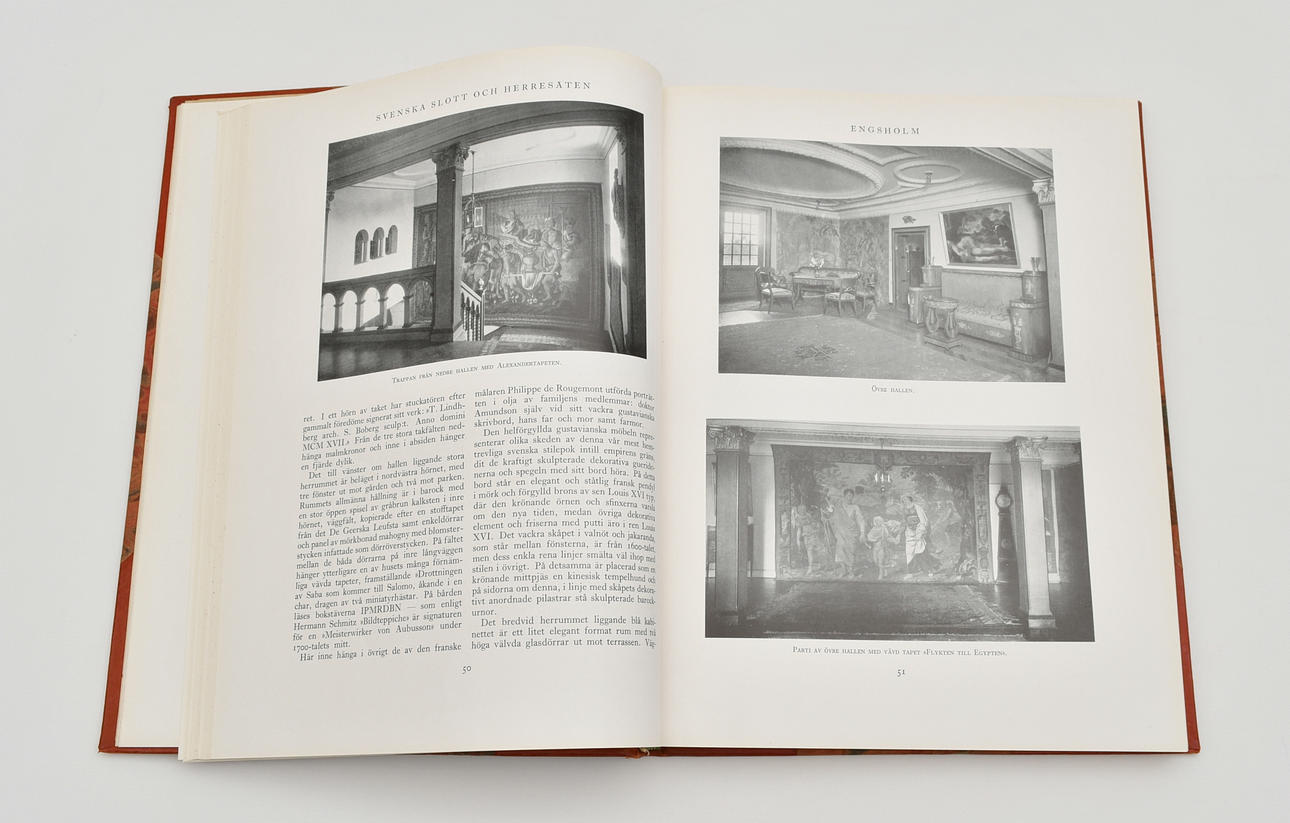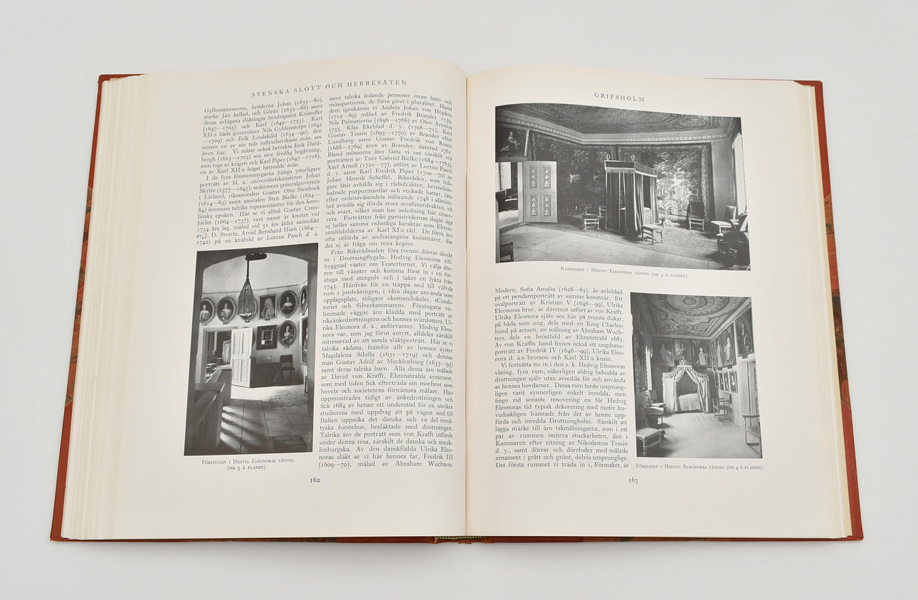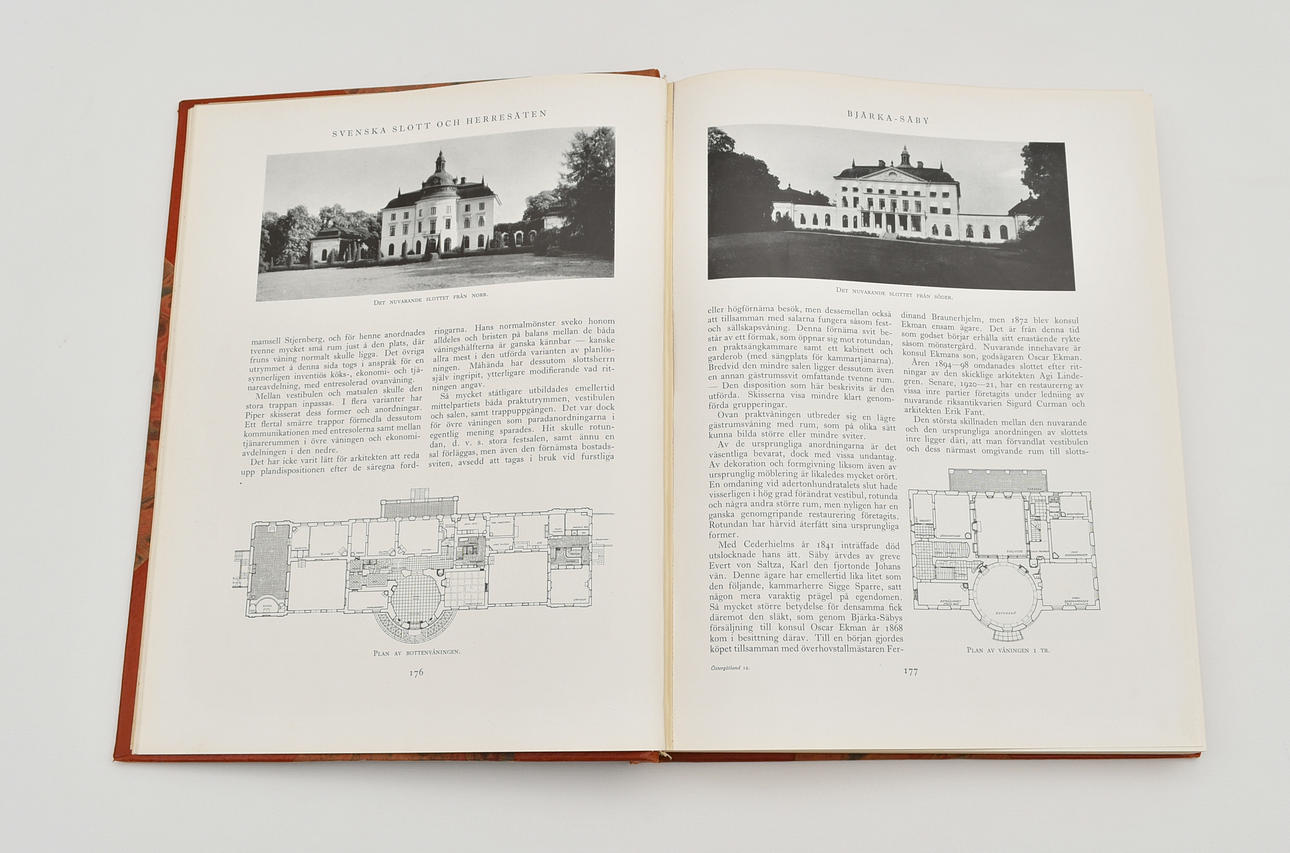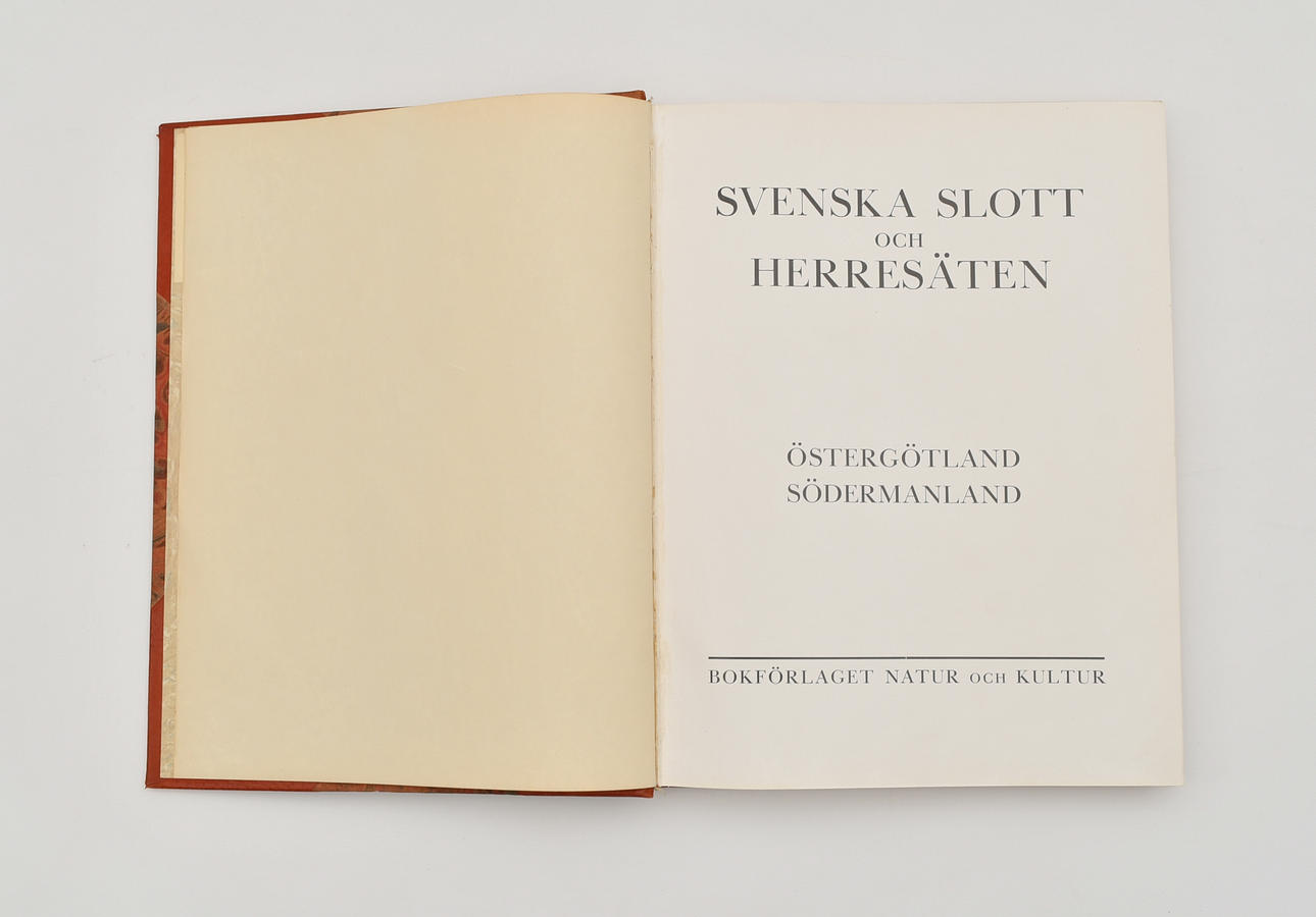 A. Roosval, (Red). Förlagets röda halvfranska band med upphöjda bind, guldornerade ryggar, marmorerade pärmpapper och övre guldsnitt samt förgyllt landskapsvapen på frampärmen.