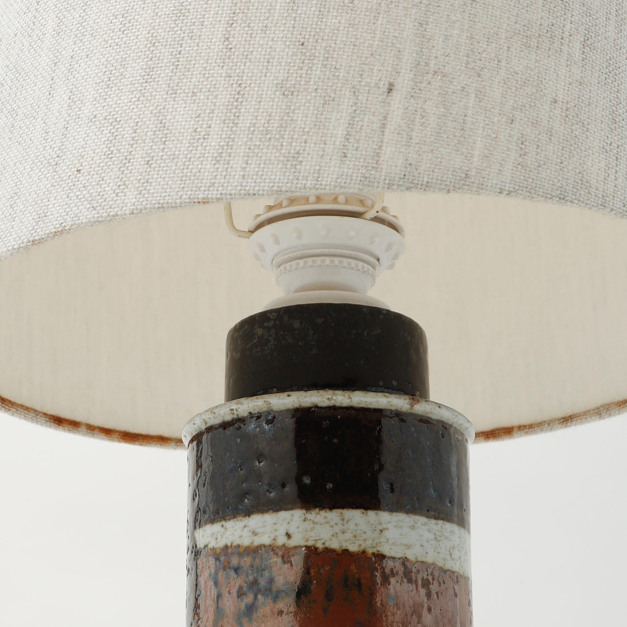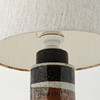 Glaserat chamotterat stengods. Skärm medföljer. Höjd exkl. lampsockel ca 23 cm, höjd inkl. skärm 47 cm.