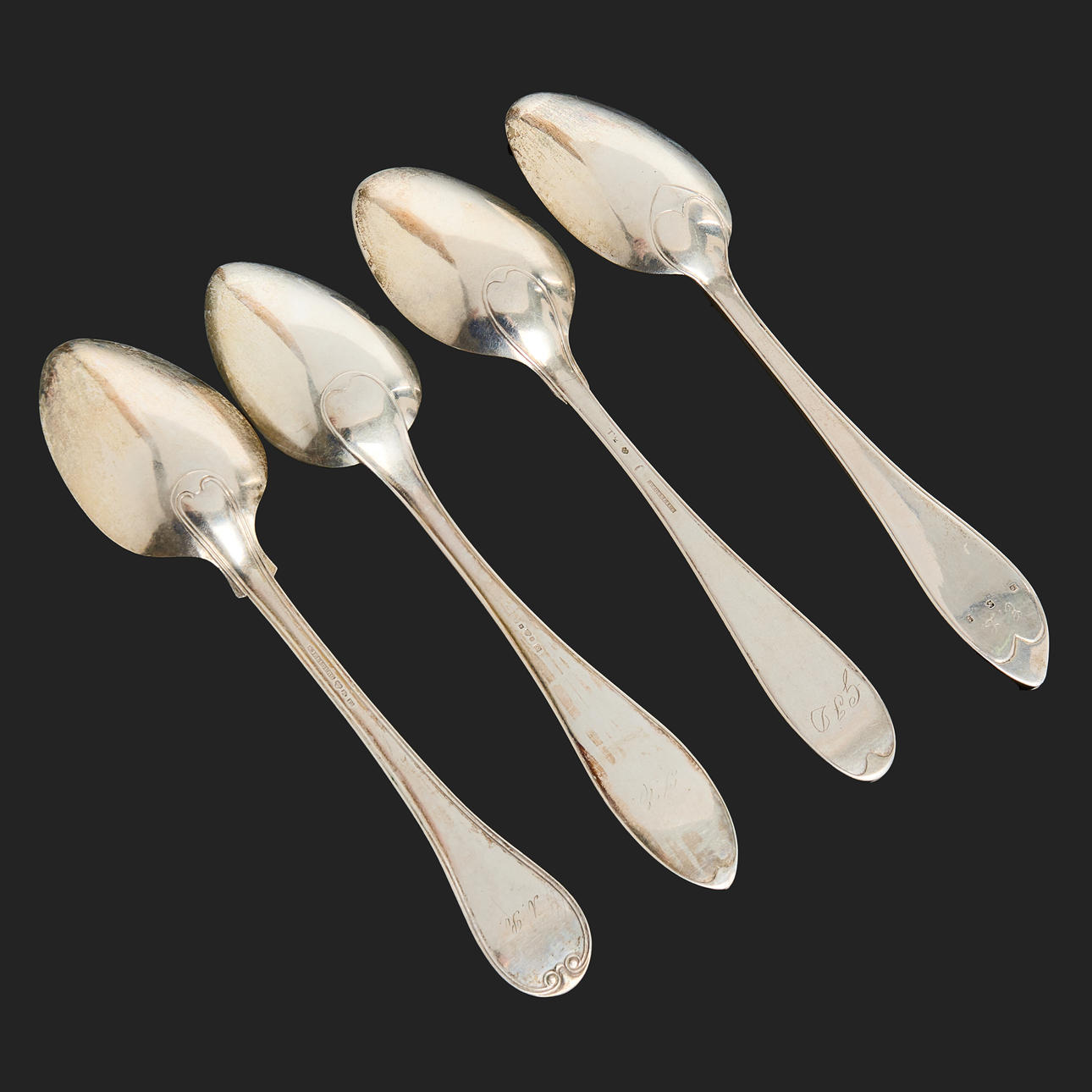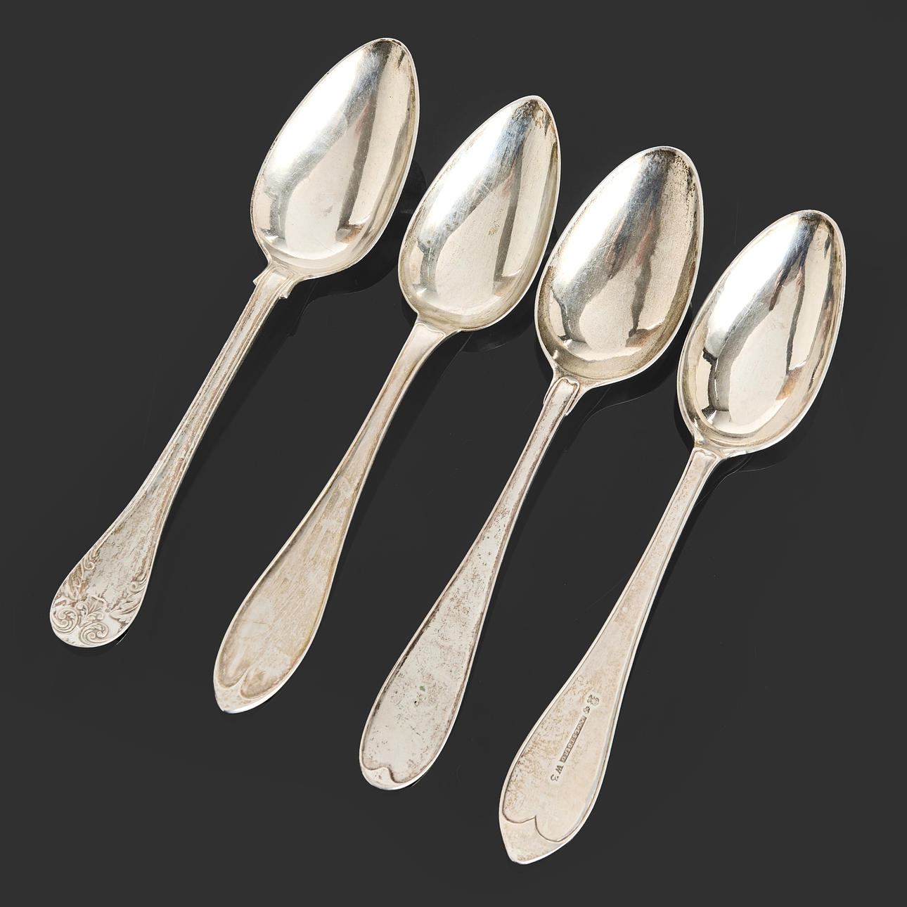 4 skedar, Sverige, 1800-tal, modell svensk samt gammal fransk, längd ca 21,5 - 22 cm