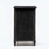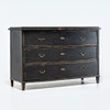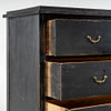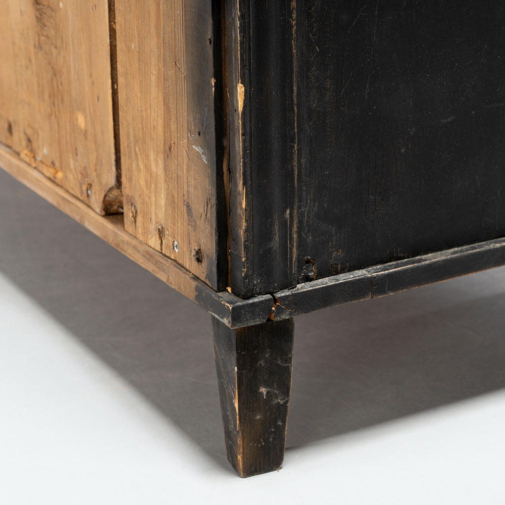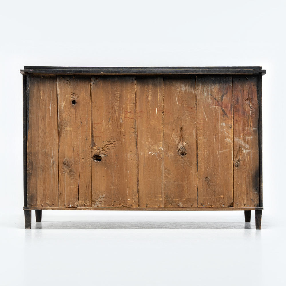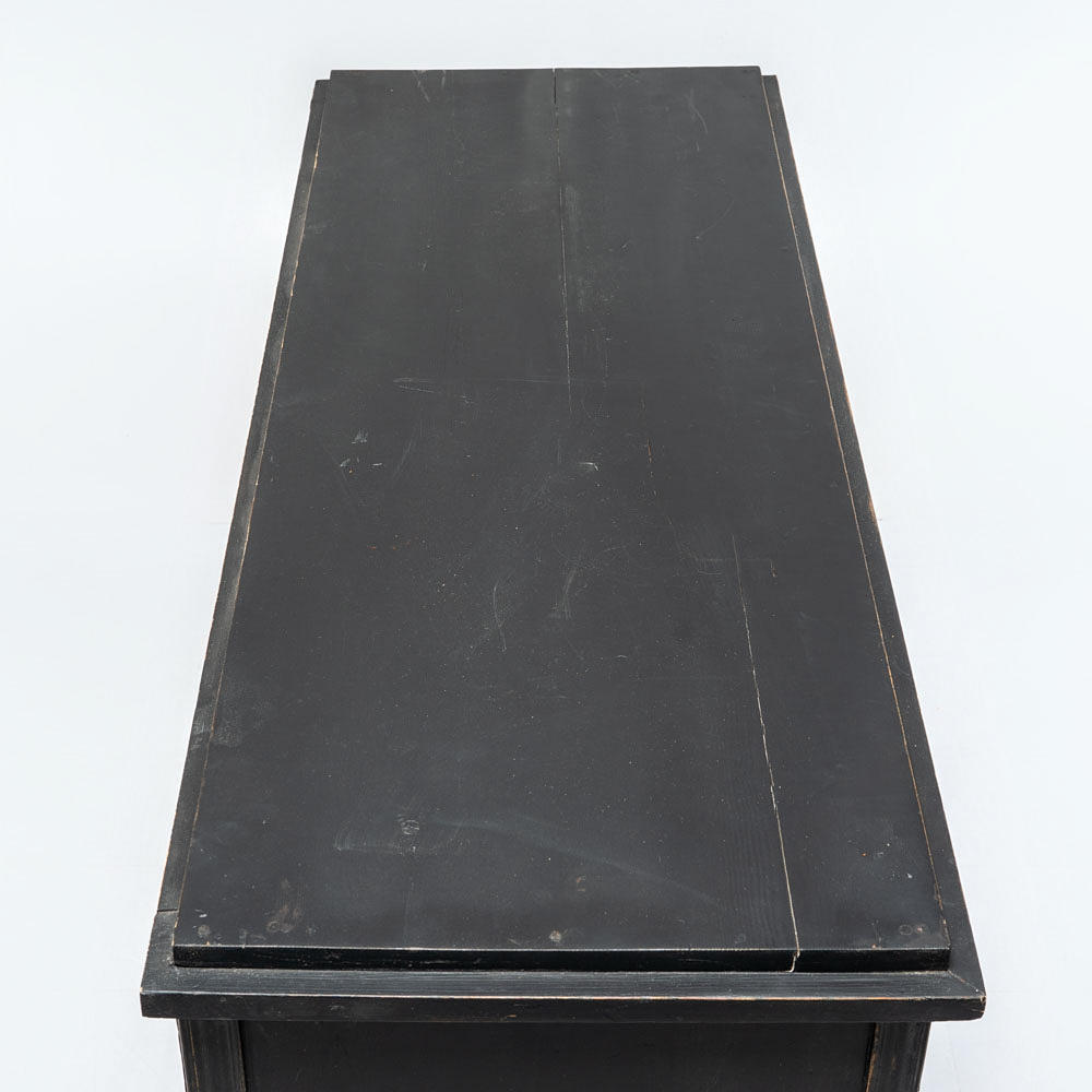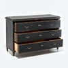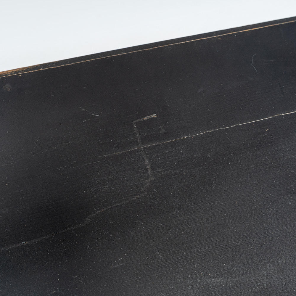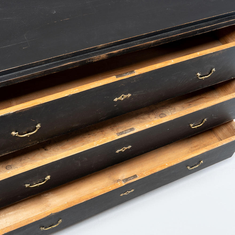 Svartmålat trä, tre lådor med mässingsbeslag.