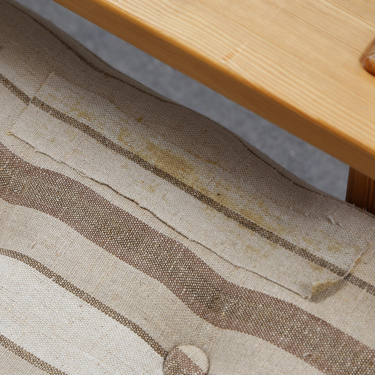 Bruks- och åldersrelaterat slitage, märken, slitet tyg.