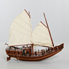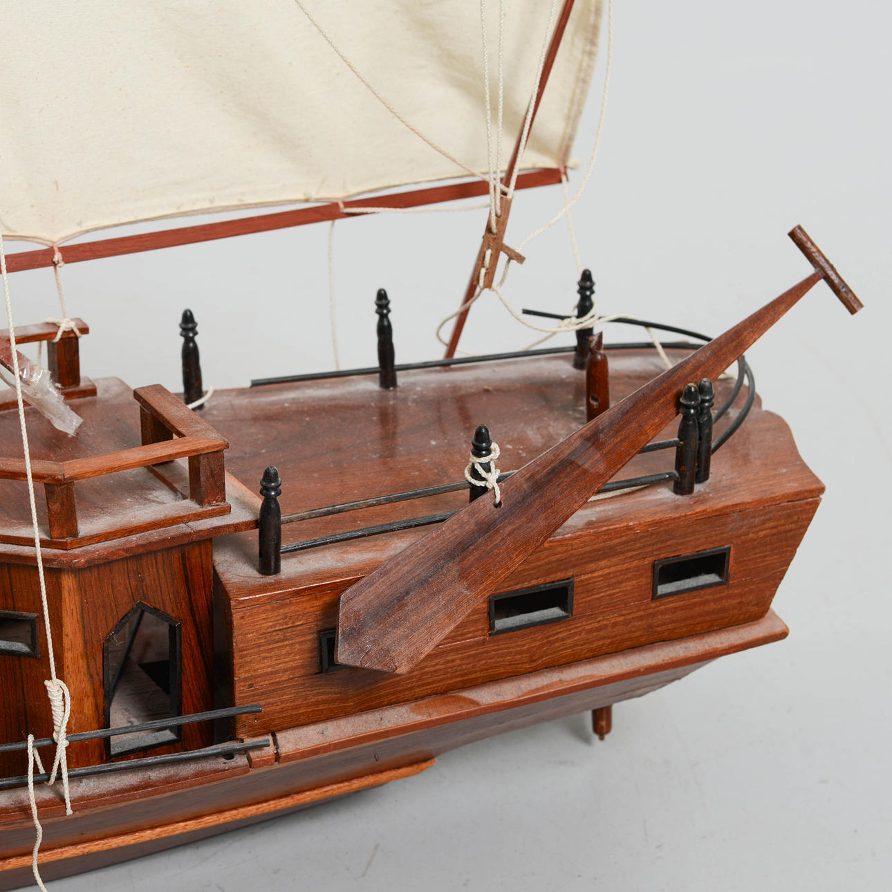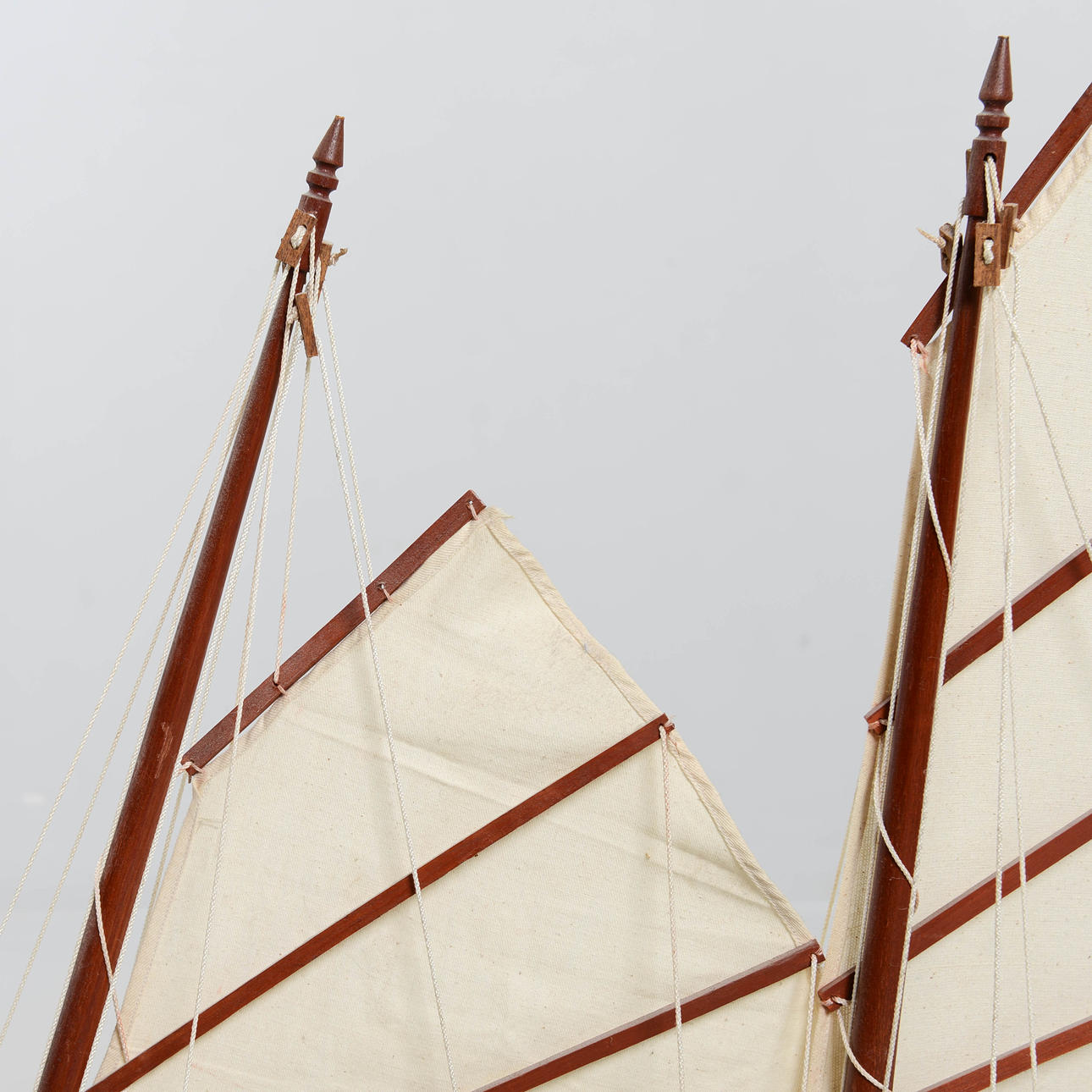Trä och segel i textil. Längd 105 cm. Höjd 89 cm.