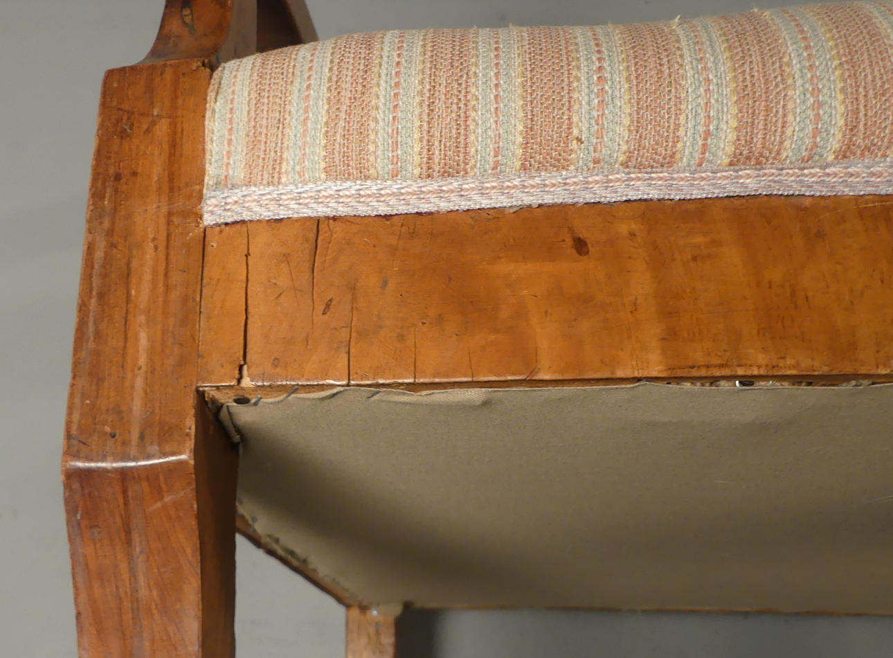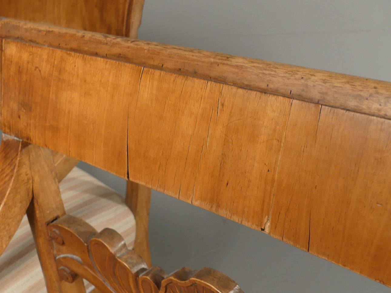 Fanerskador, fläckar och slitage på trä.