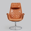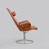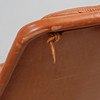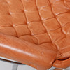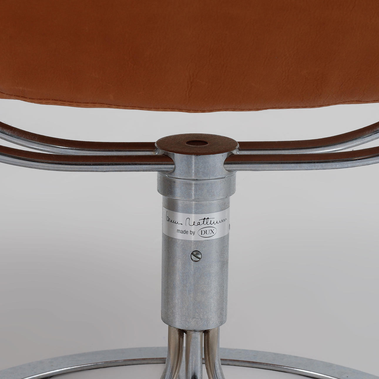 Helklädd i cognacsfärgat dakotaläder. Stativ av kromat stål med autoretur-funktion. Etikettmärkt. Bredd ca 68 cm, sitthöjd ca 43 cm, rygghöjd ca 98 cm.