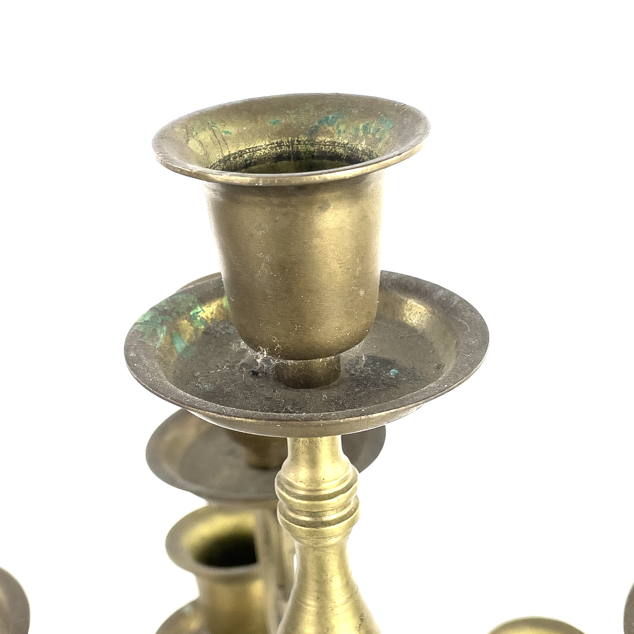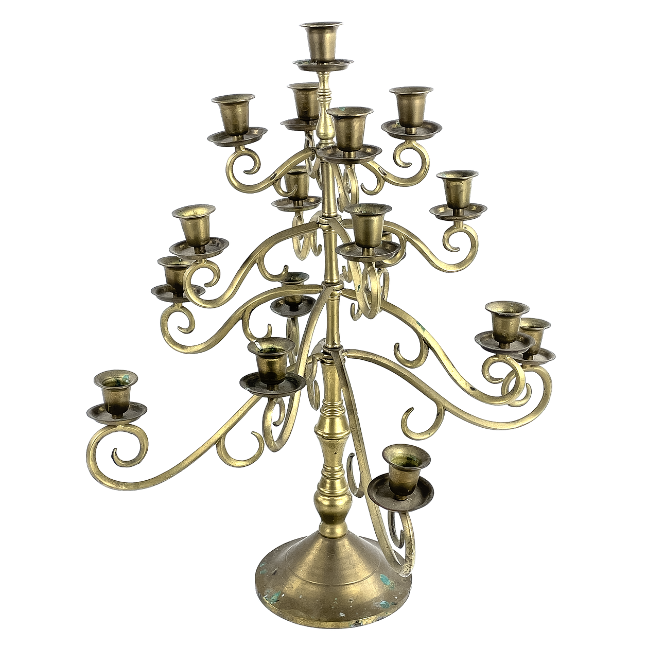Stomme i mässing med 17 ljushållare. Höjd ca 53 cm, diameter ca 46 cm.