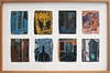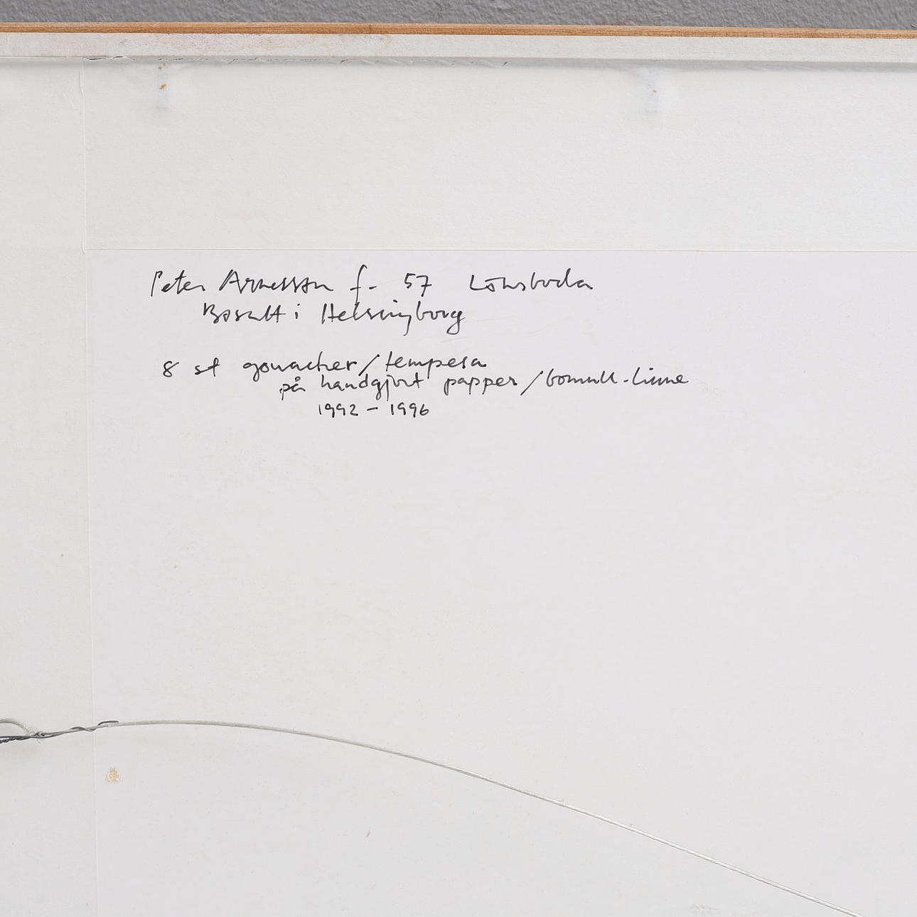 Gouache på papper, signerade, ca 21x16 cm/st, ramens mått ca 63x96 cm.