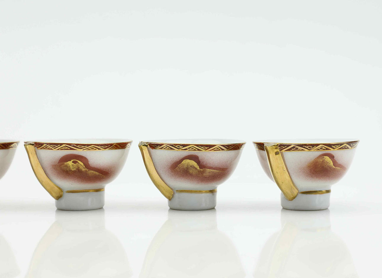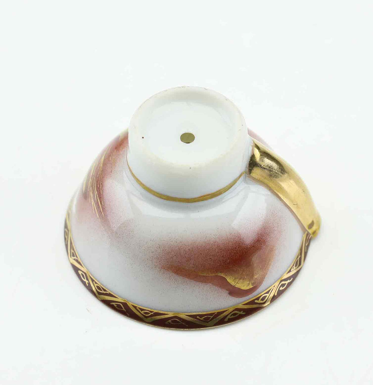 Bruks- och åldersrelaterat slitage. Förekommer nagg på fotringar, slitage dekor.