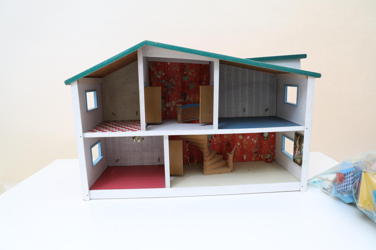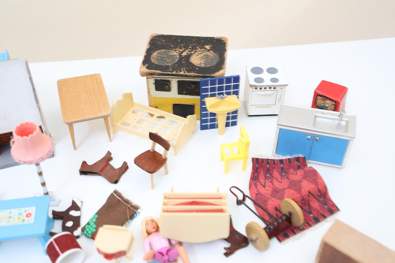 4938548. DOCKSKÅP, omkring 1900-talets, "Micki leksaker".