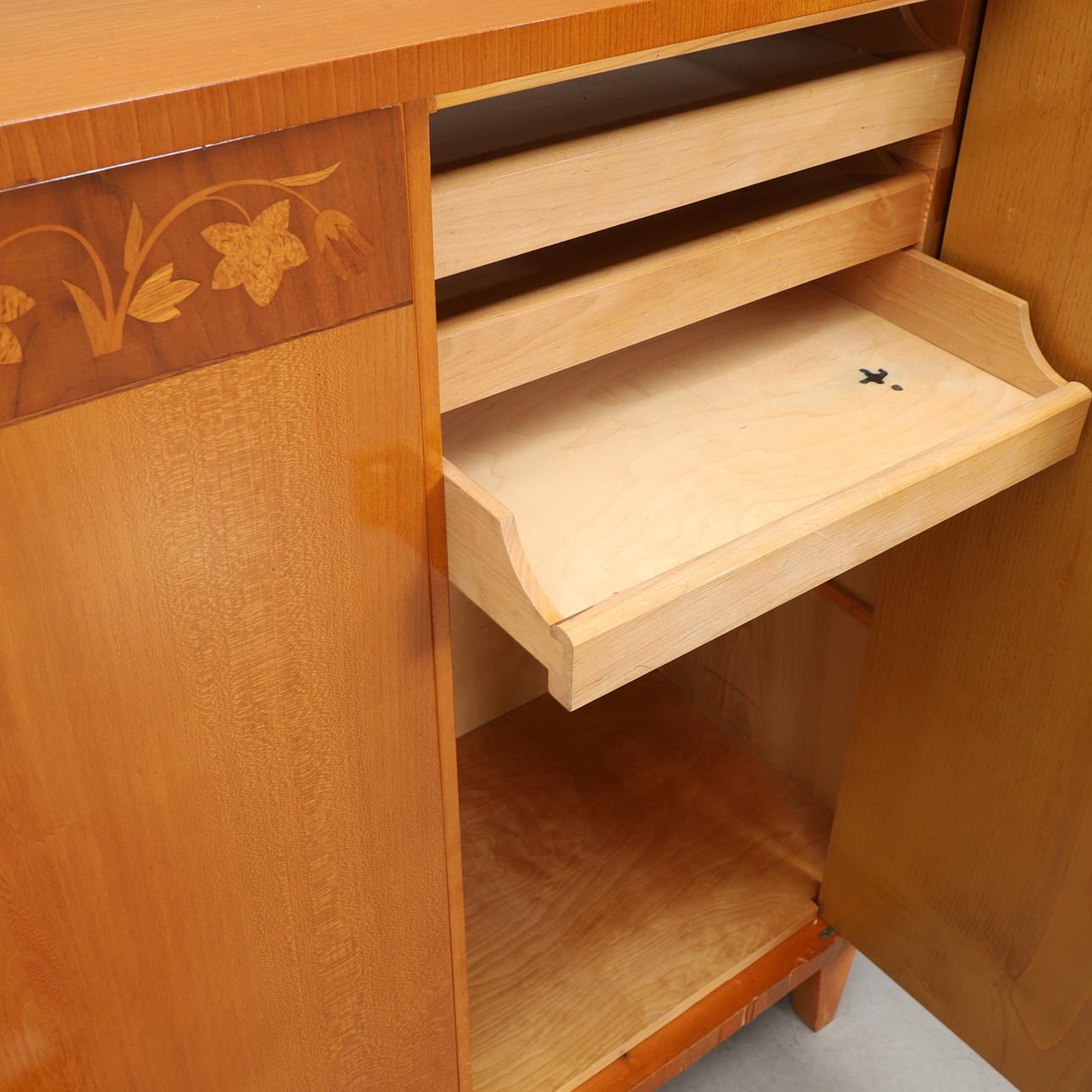 Intarsiadekor. Bredd 166, djup 46, höjd 110 cm.