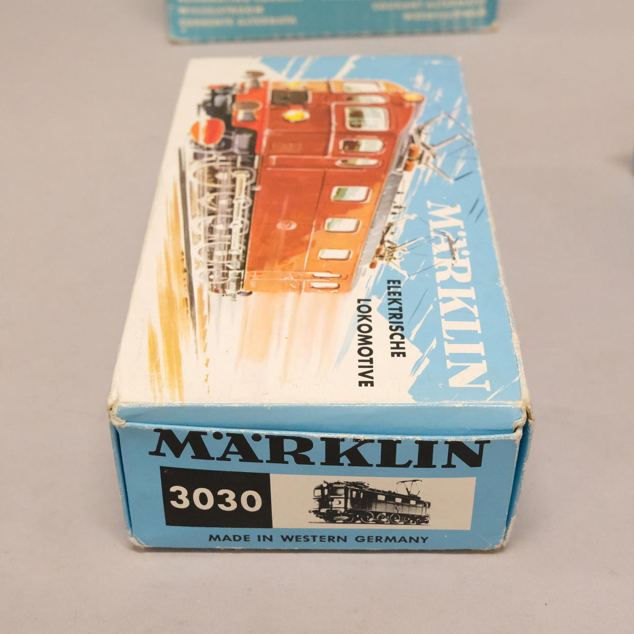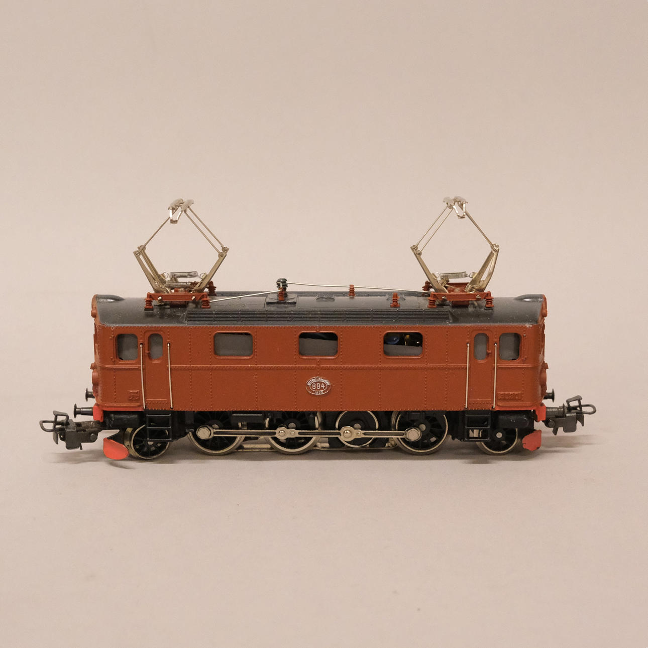 Lok nr. 3030, längd 16 cm, fyra vagnar, varav en Lima, längd 10 - 19 cm, räls samt transformator.