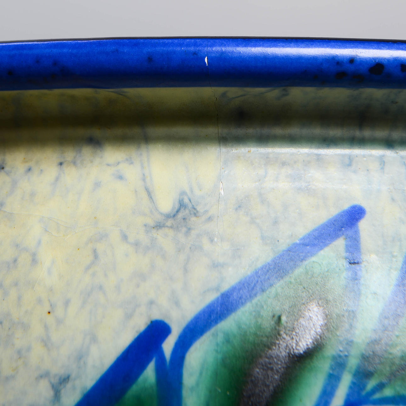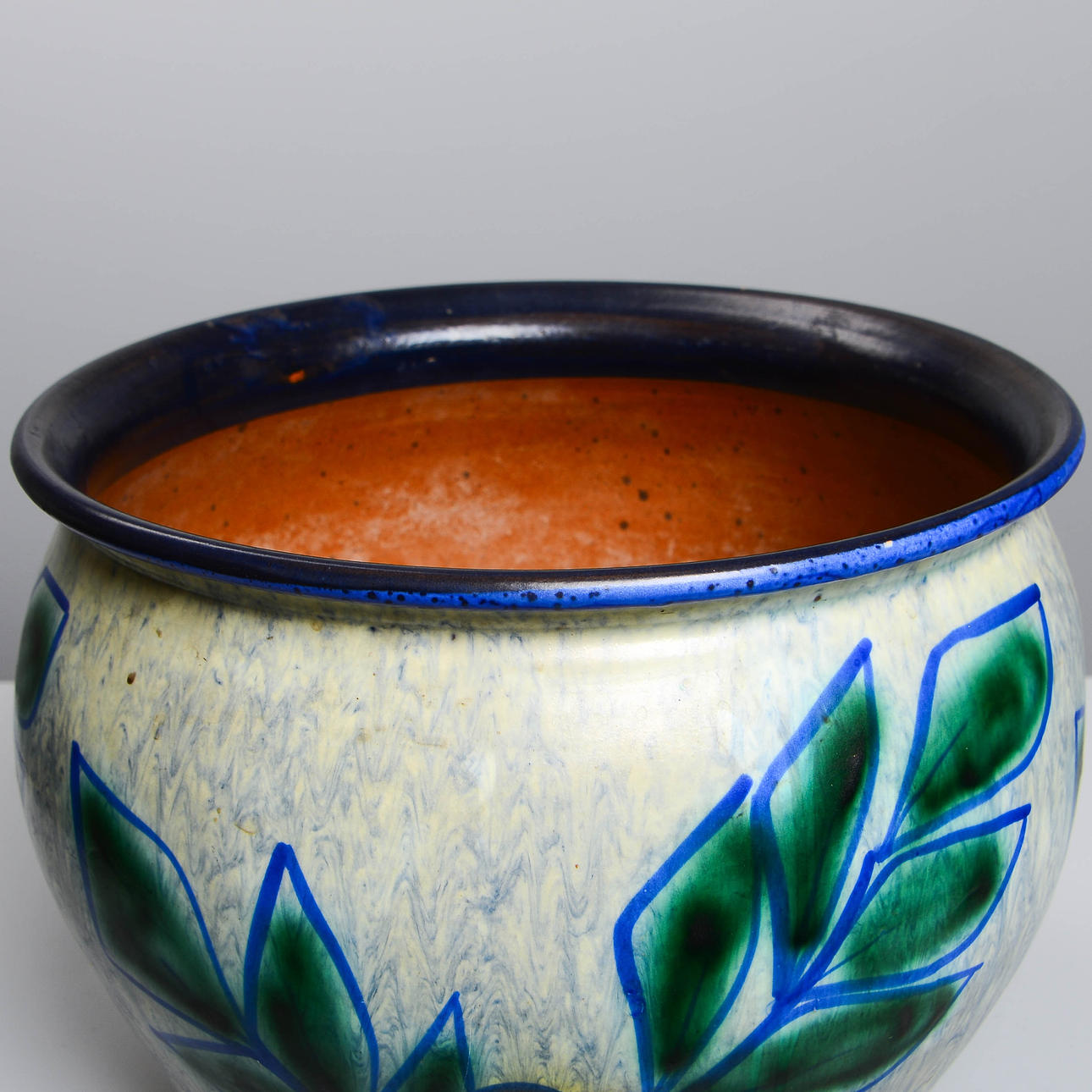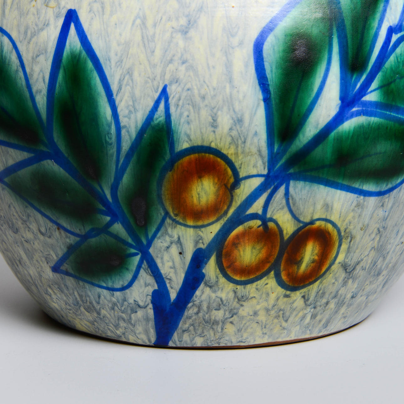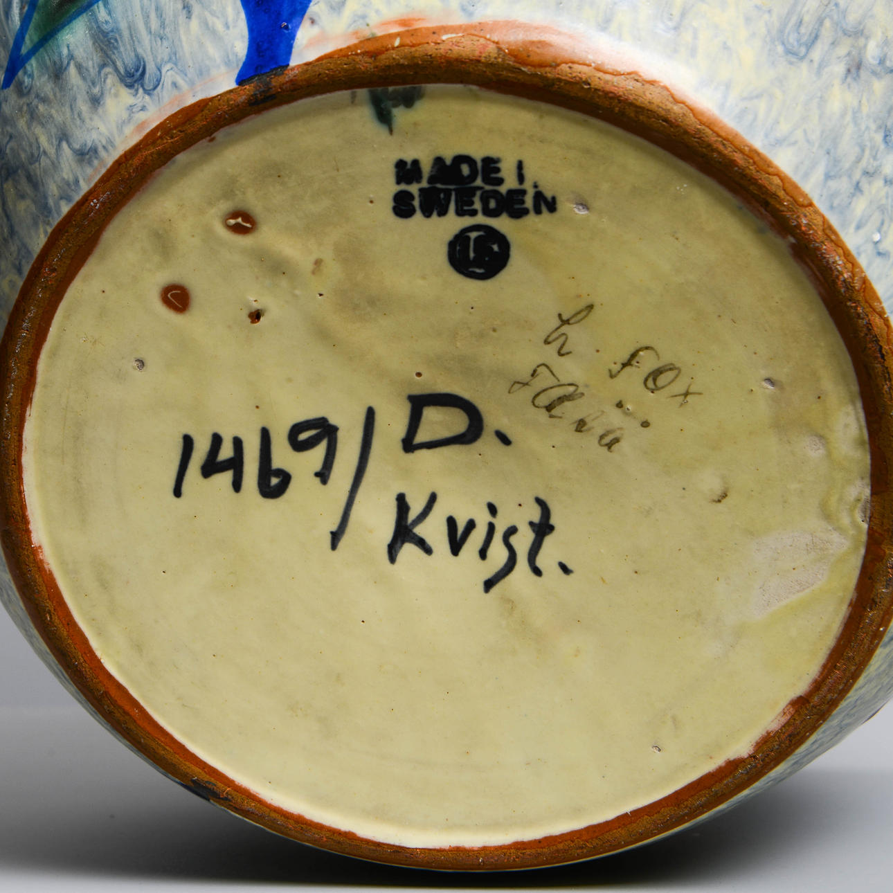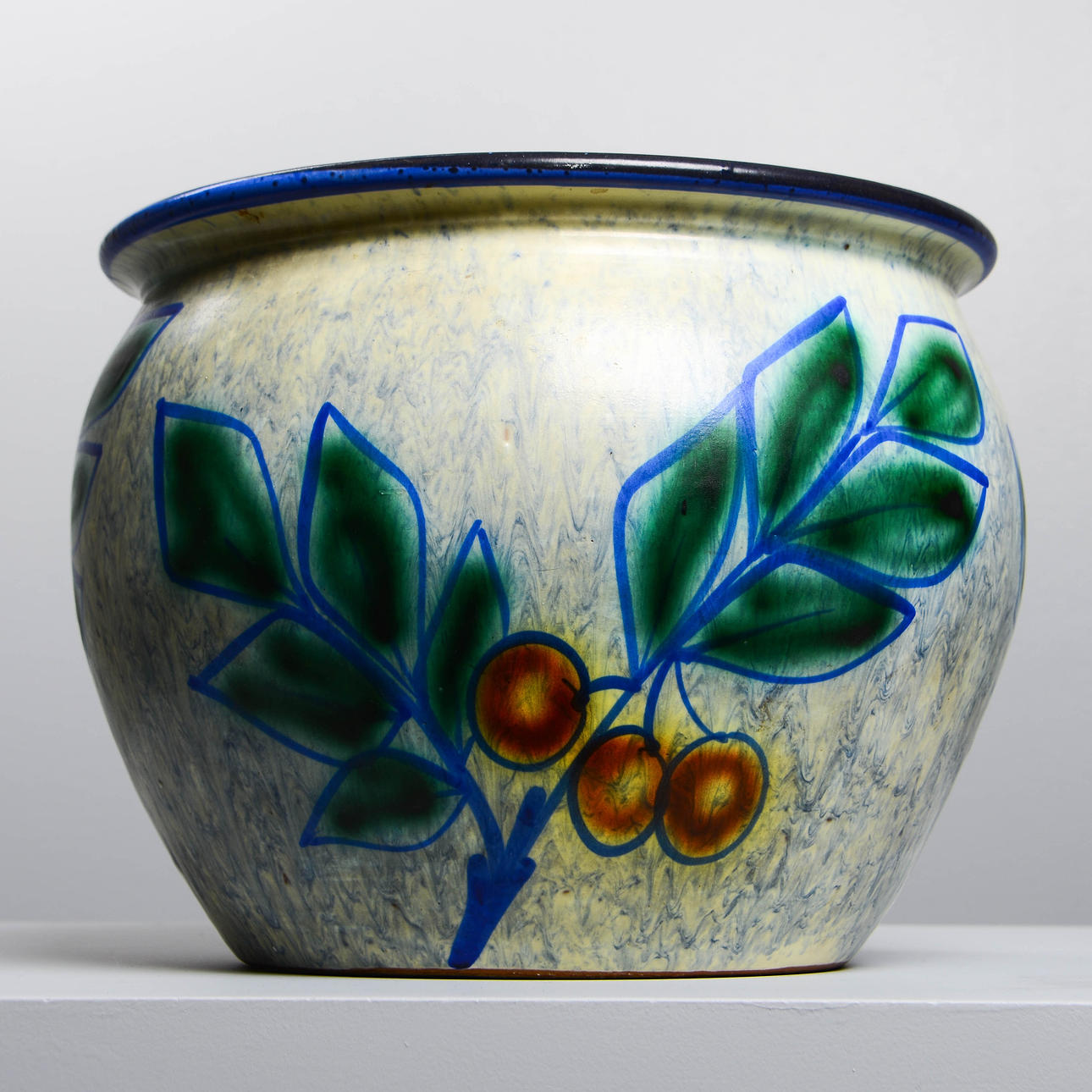 Lergods. Dekorens namn Kvist. Höjd 26 cm. Diameter 34 cm.