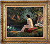 Landskap med sittande kvinna. Signerad