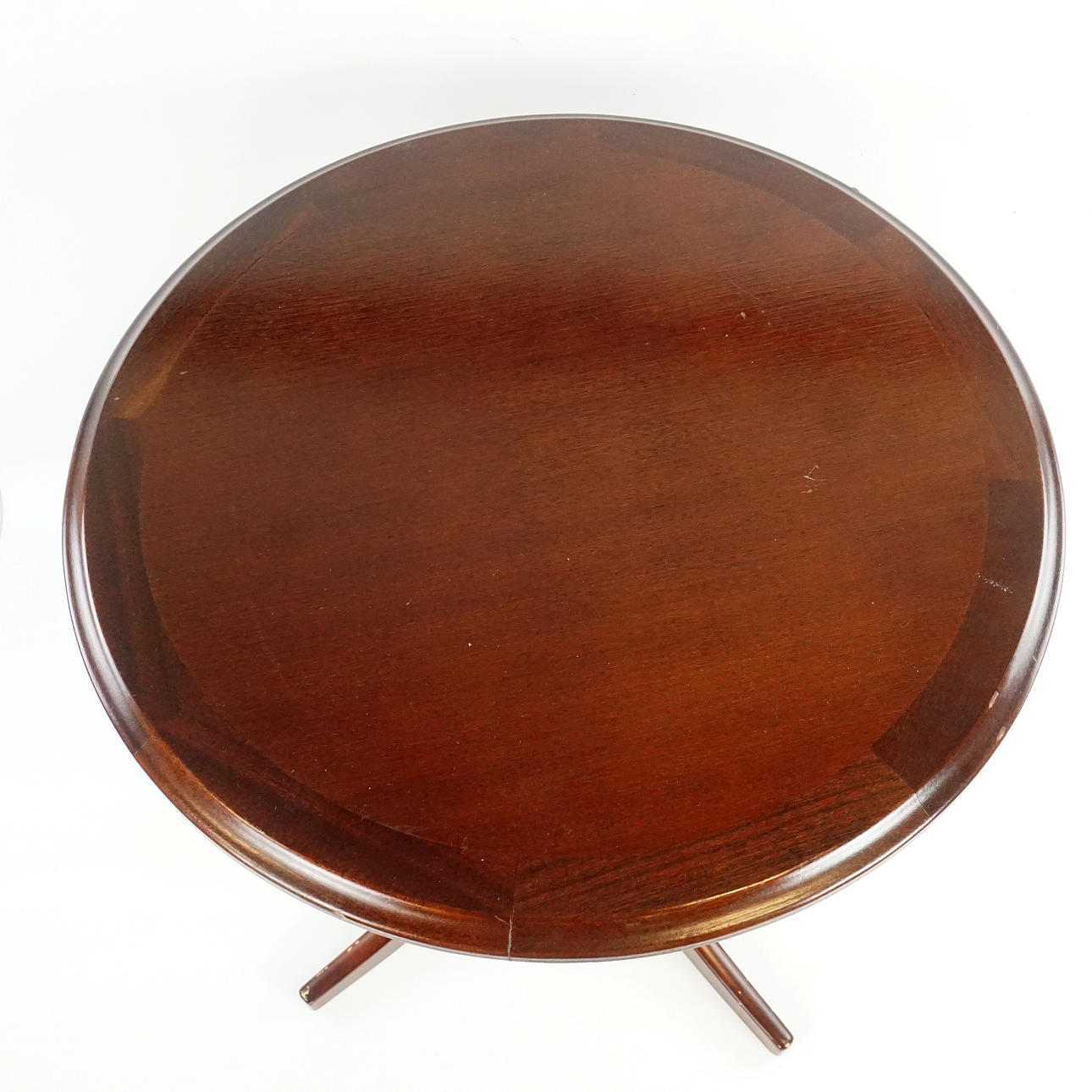 Sidobord på pelarfot i betsat och lackerat trä. Höjd ca 61 cm, diameter 60 cm.