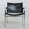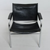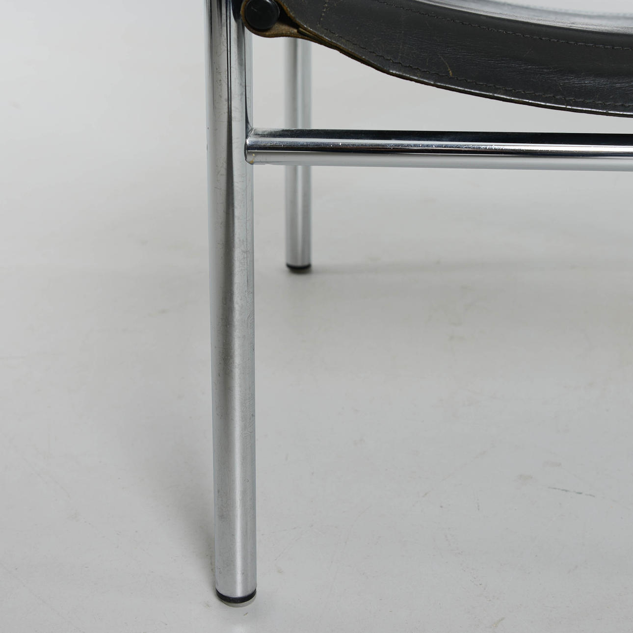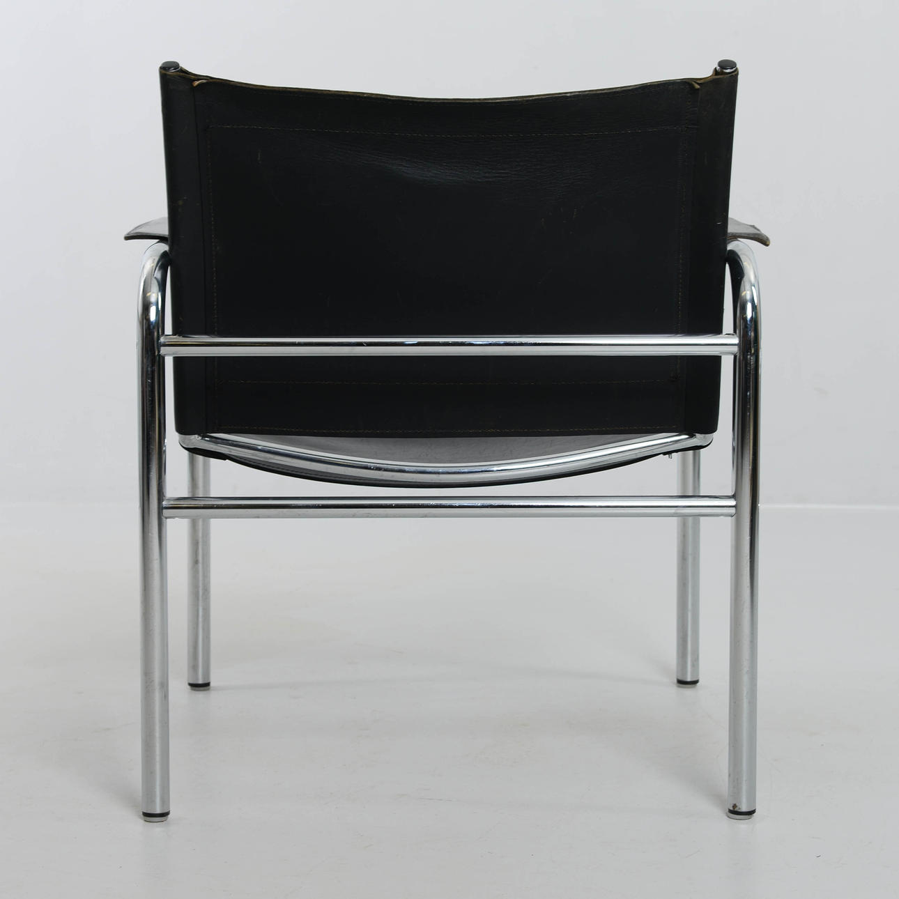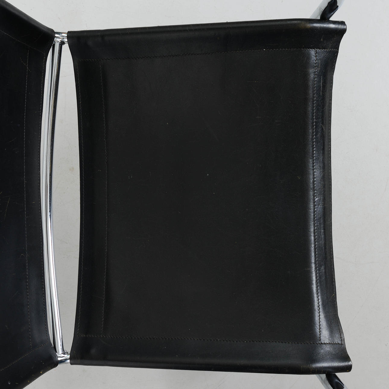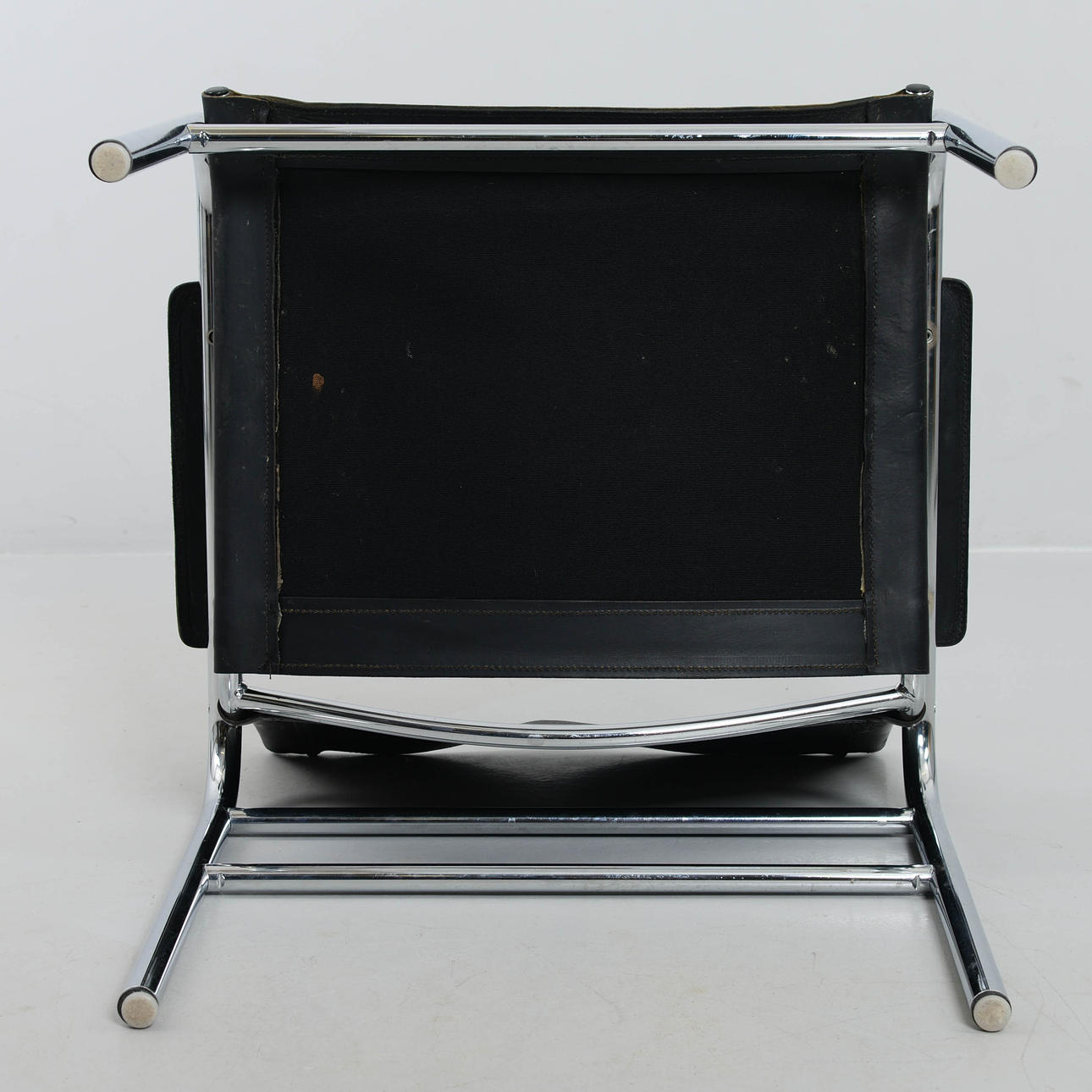 Svart klädsel i skinn. Stomme i kromad metall.