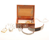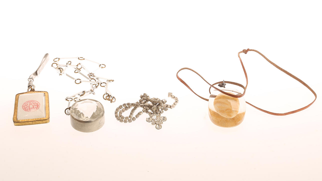 Skrin med metall och kupad glas. Ca 11 x 16 cm.
