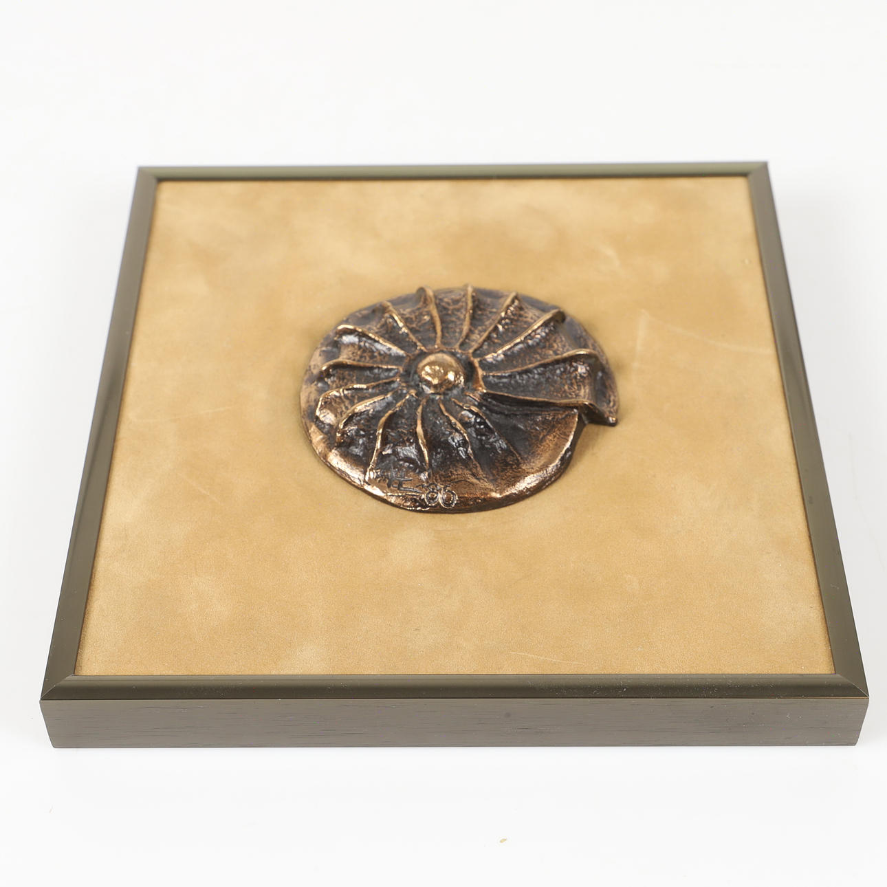 4941669. OIDENTIFIERAD KONSTNÄR. Relief, snäcka, brons, signerad HL-86.