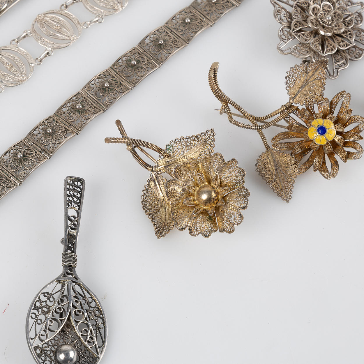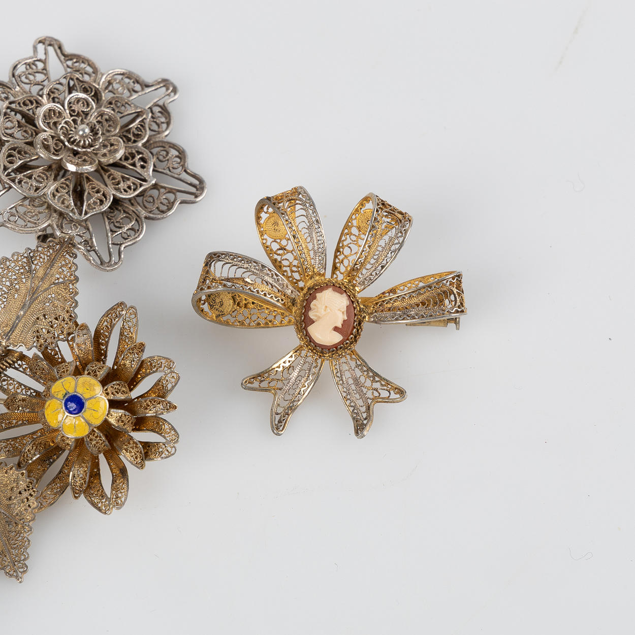 5 broscher, H ca 4 7,5 cm.