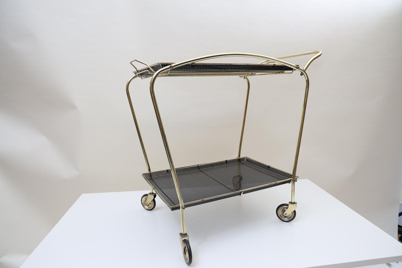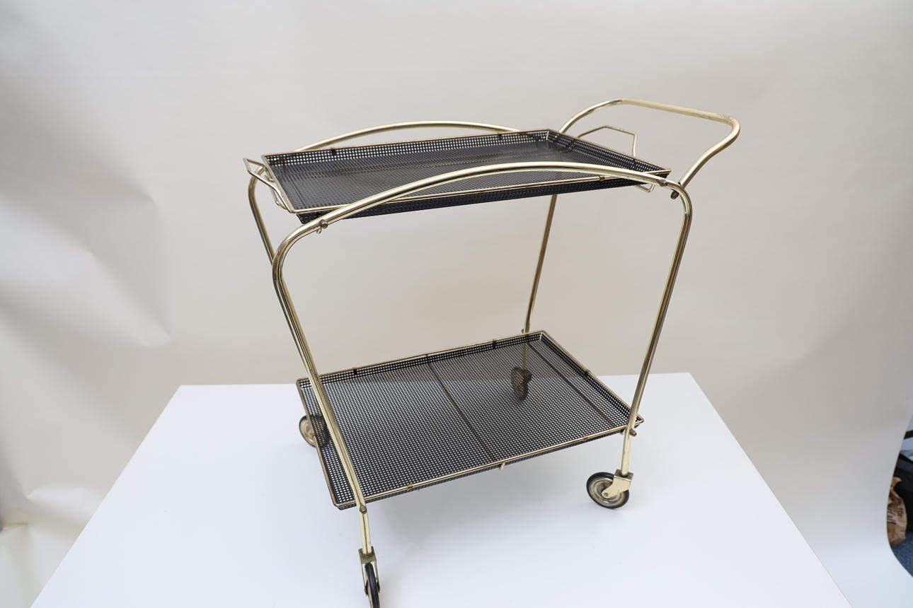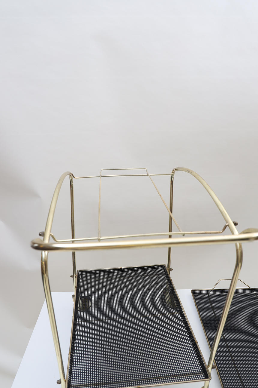 Förgylld och svartlackad metall. Löstagbar bricka.