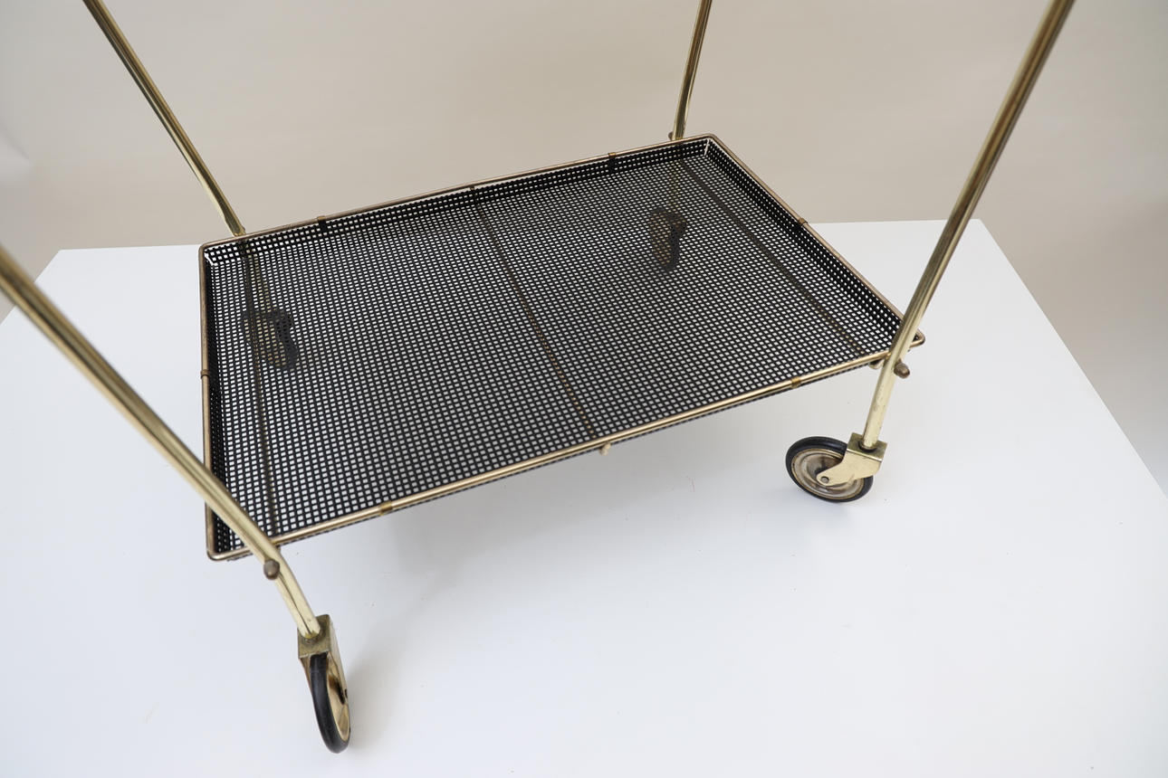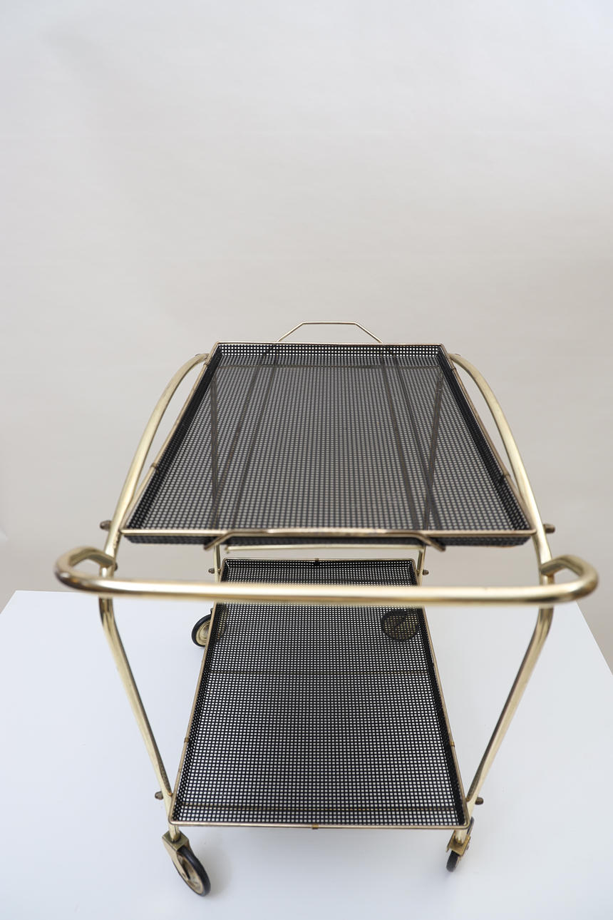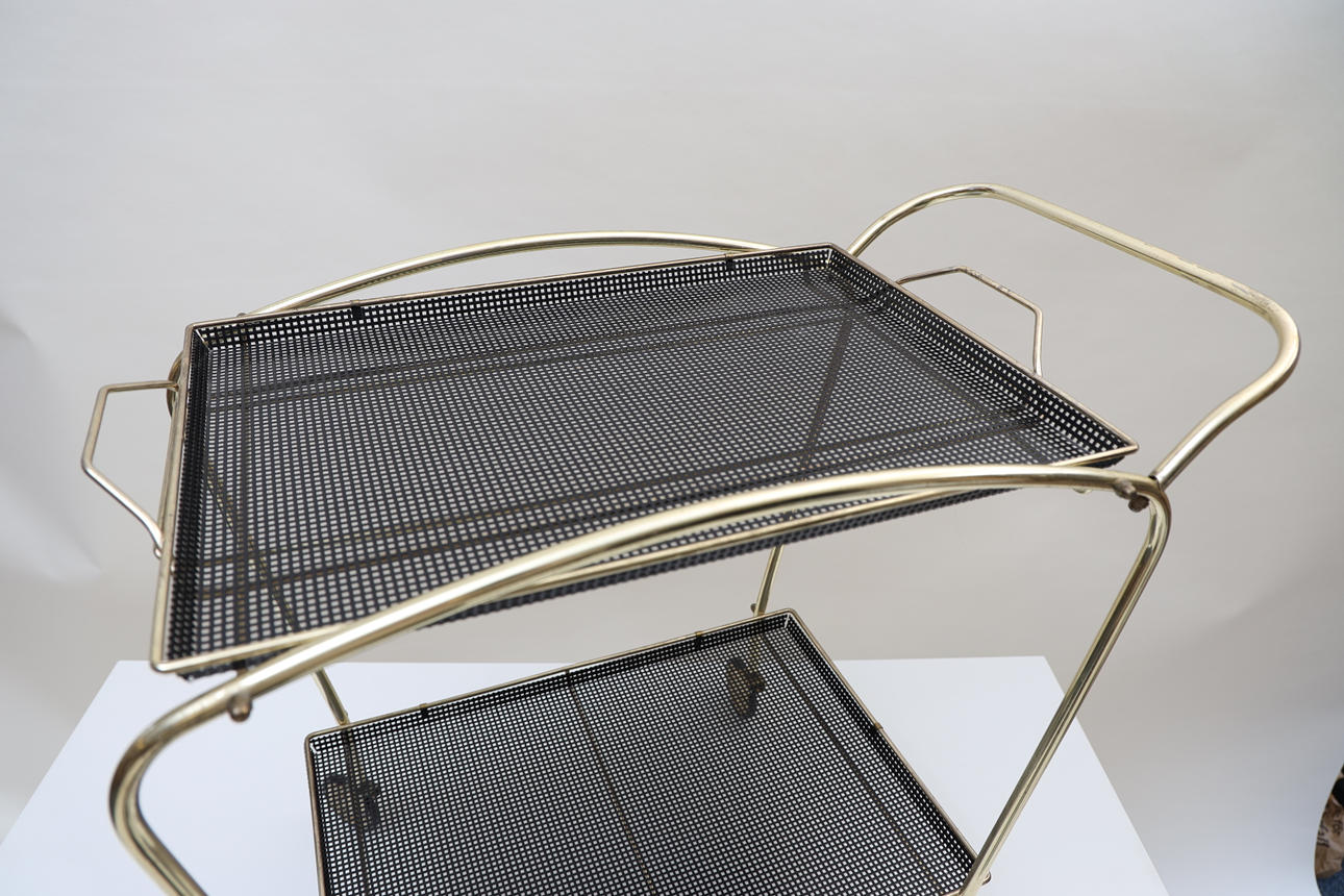 Förgylld och svartlackad metall. Löstagbar bricka.