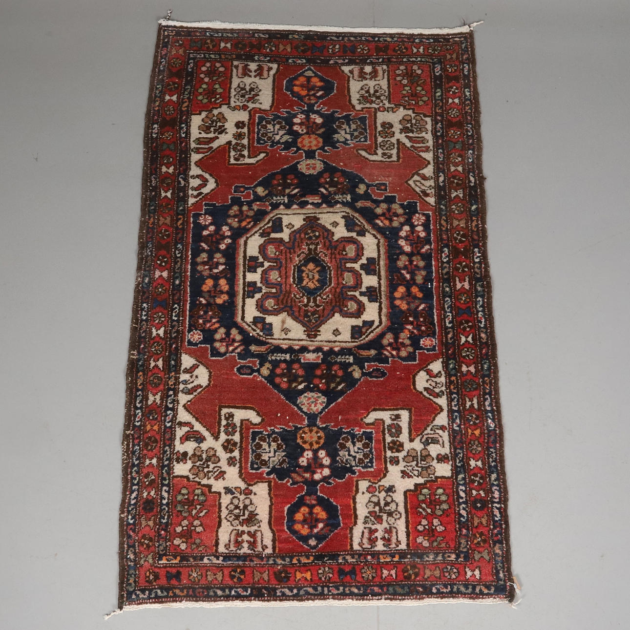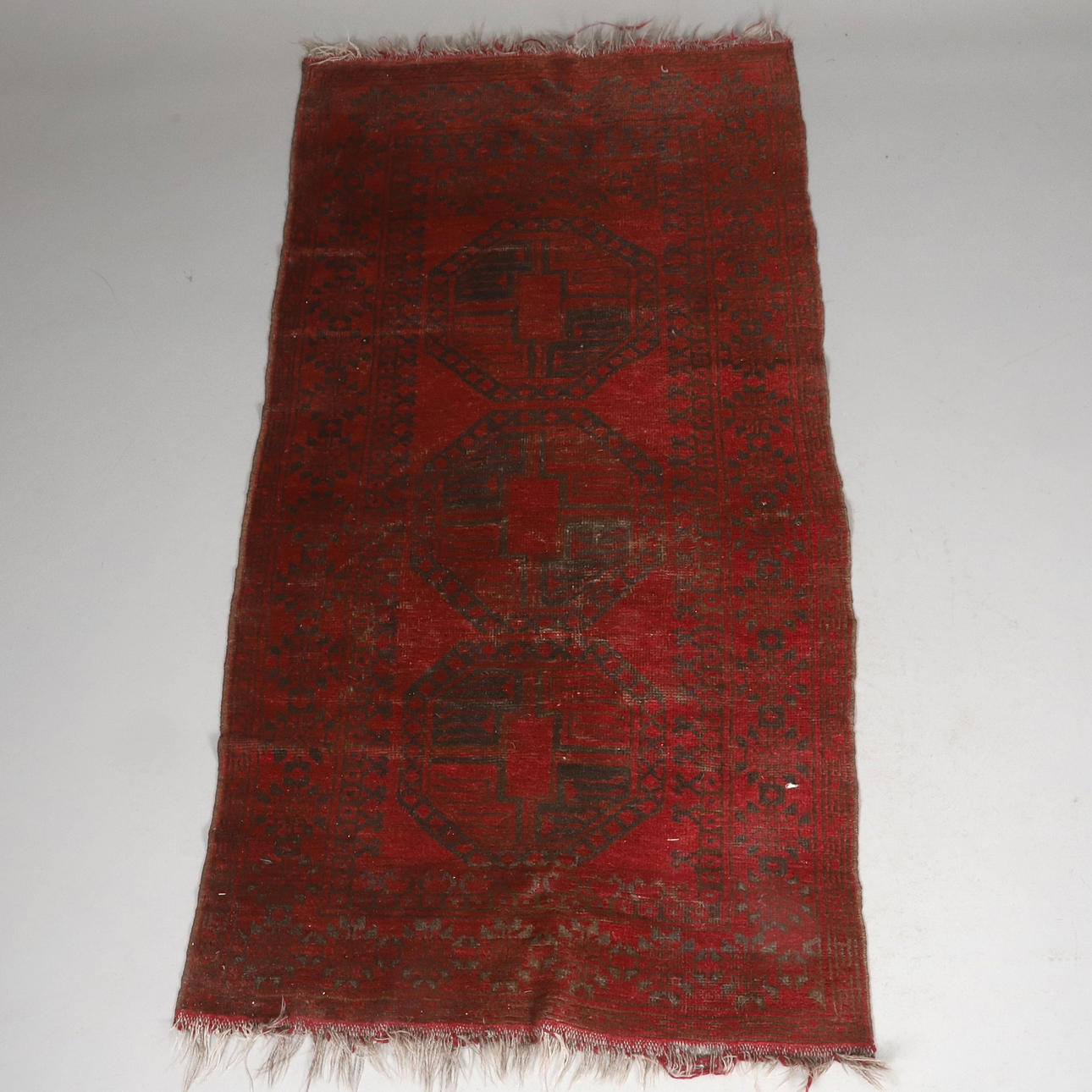 Slitna kanter och fransar, solblekta.