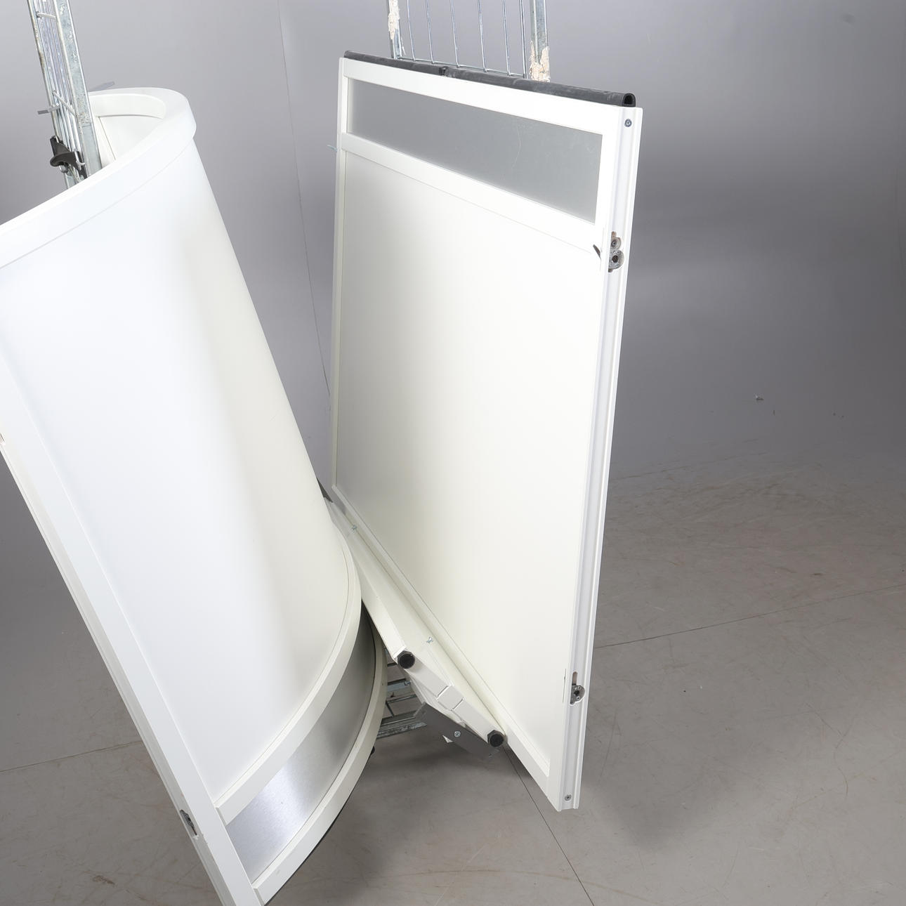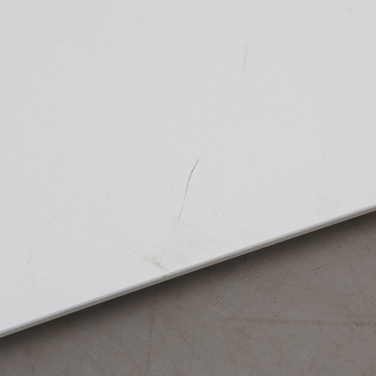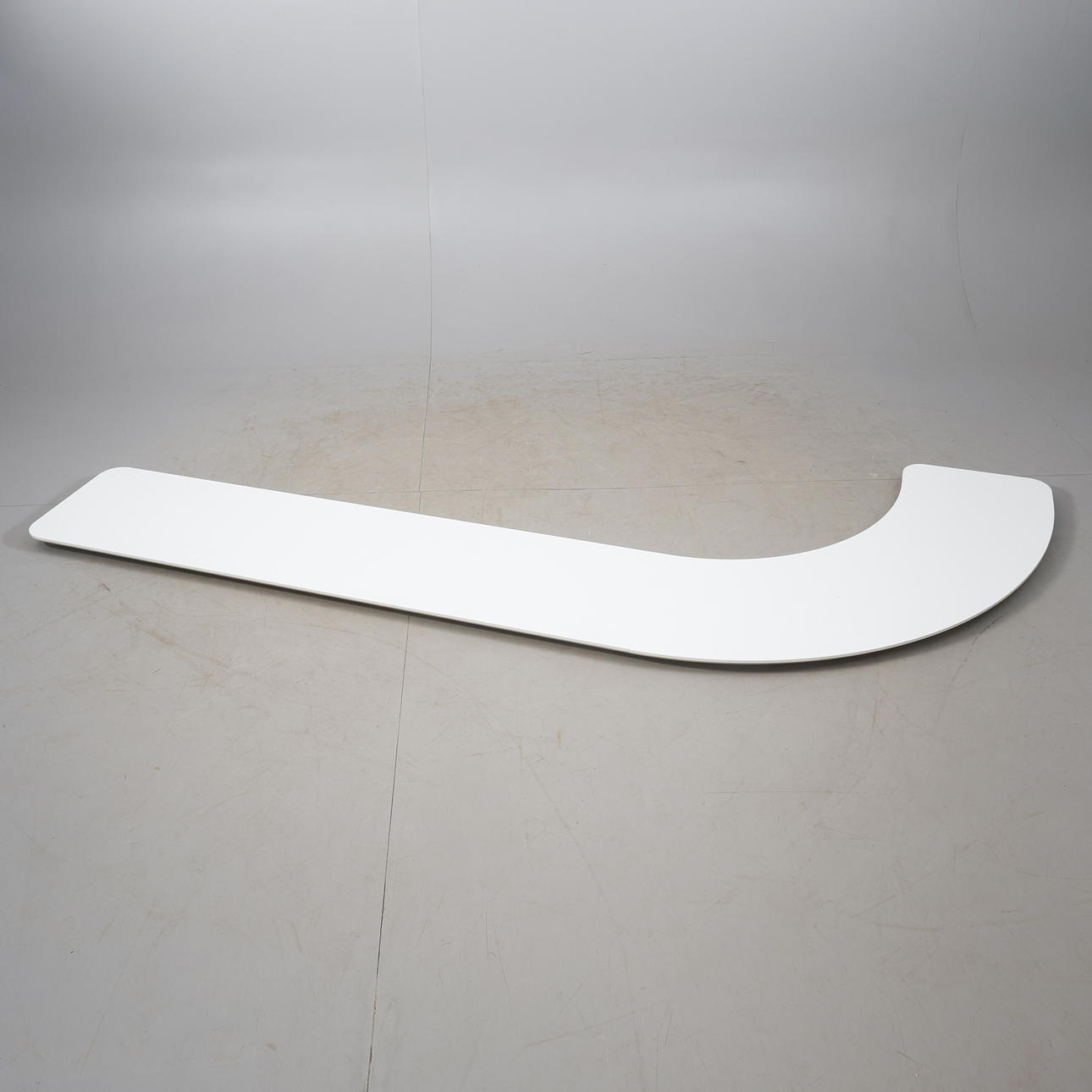 4942502. RECEPTIONSDISK, vitlaminerad, vit lackat trä, samtida.