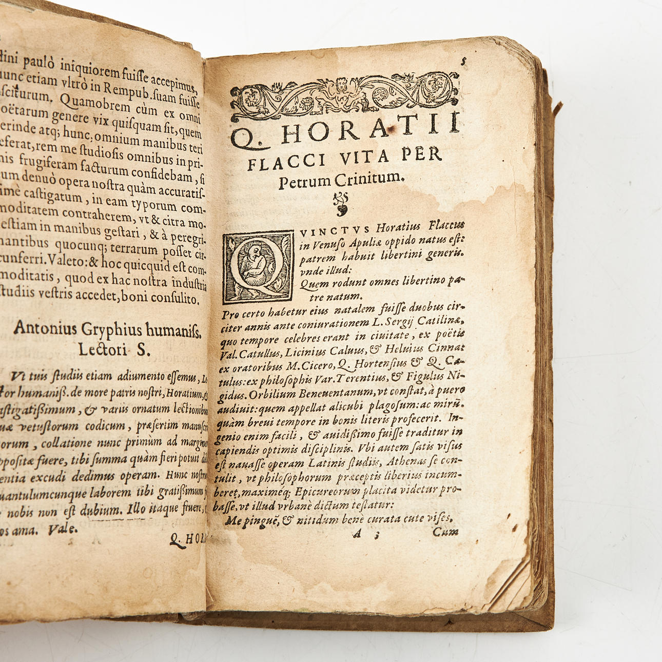QUINTUS HORATIUS FLACCUS. Ex fide atque (..) Lugduni (Leiden), (Apud Antonium Gryphium), 1566.