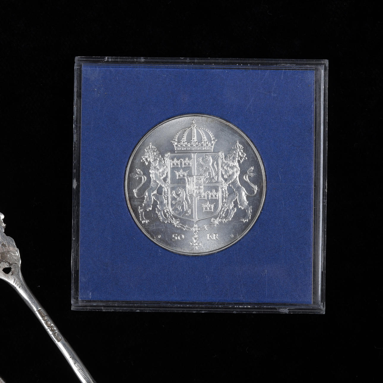 Minnesmynt, silver 92,5%, vikt 27 gram.
