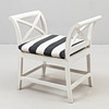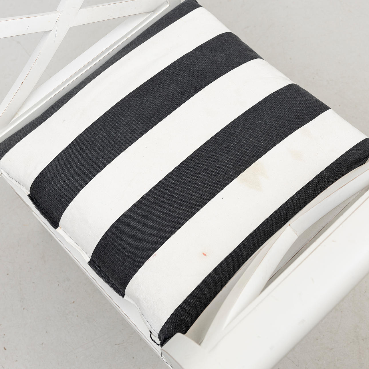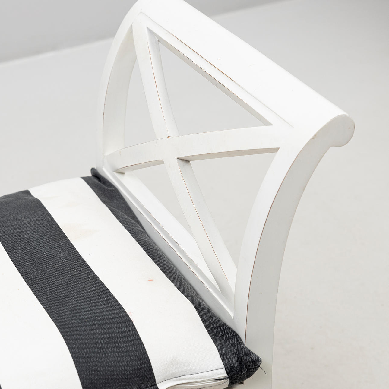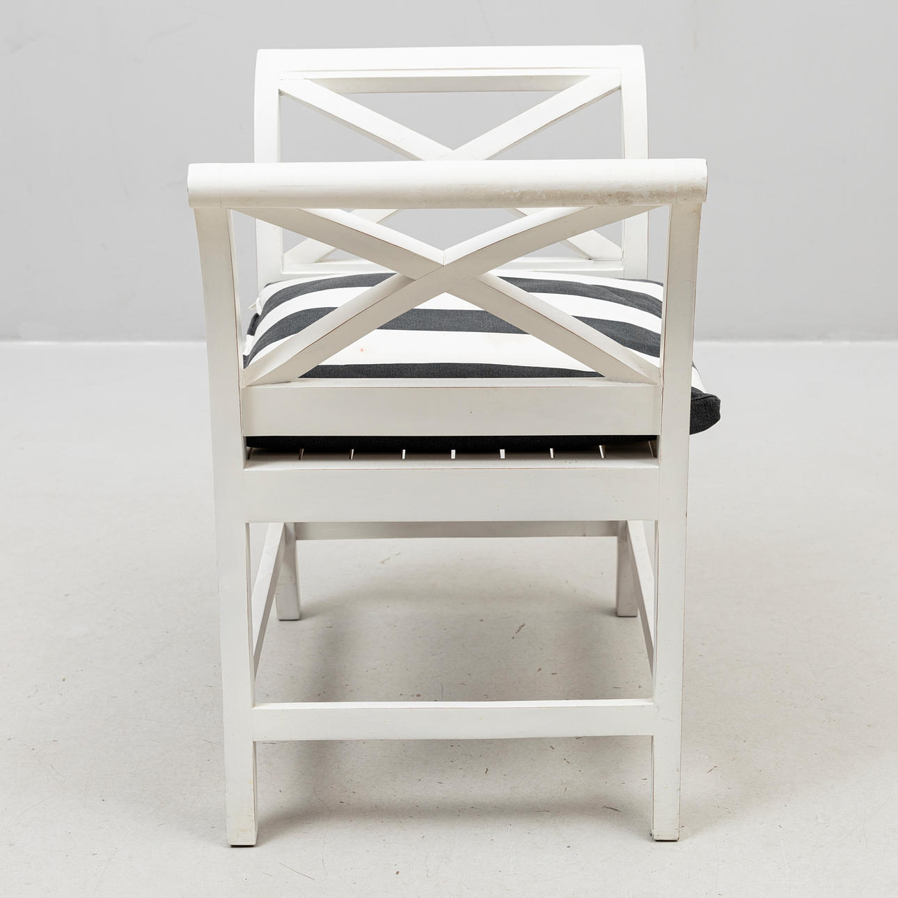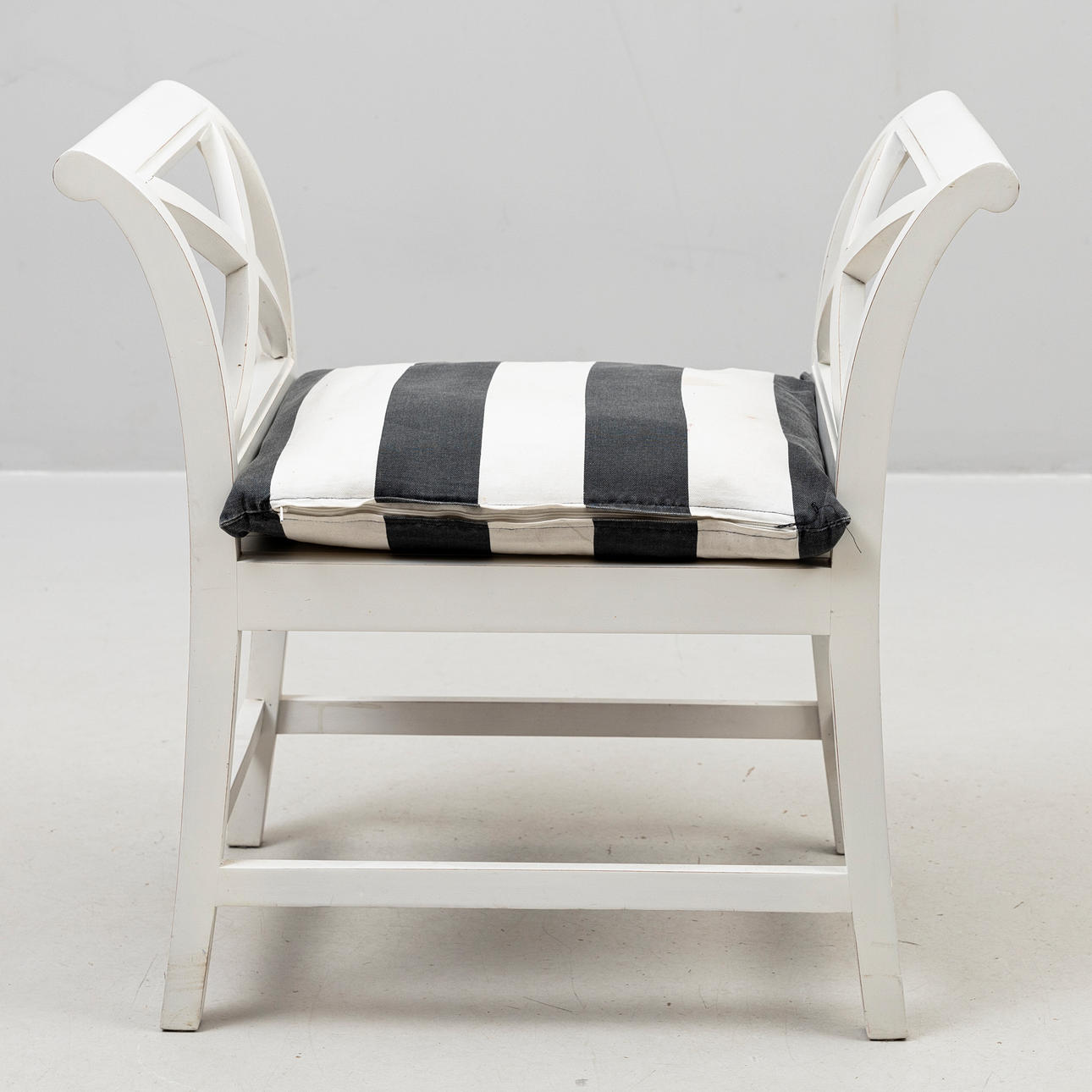 Vitmålad, genombrutna sidor med kryss samt lätt utsvängda kopplade ben