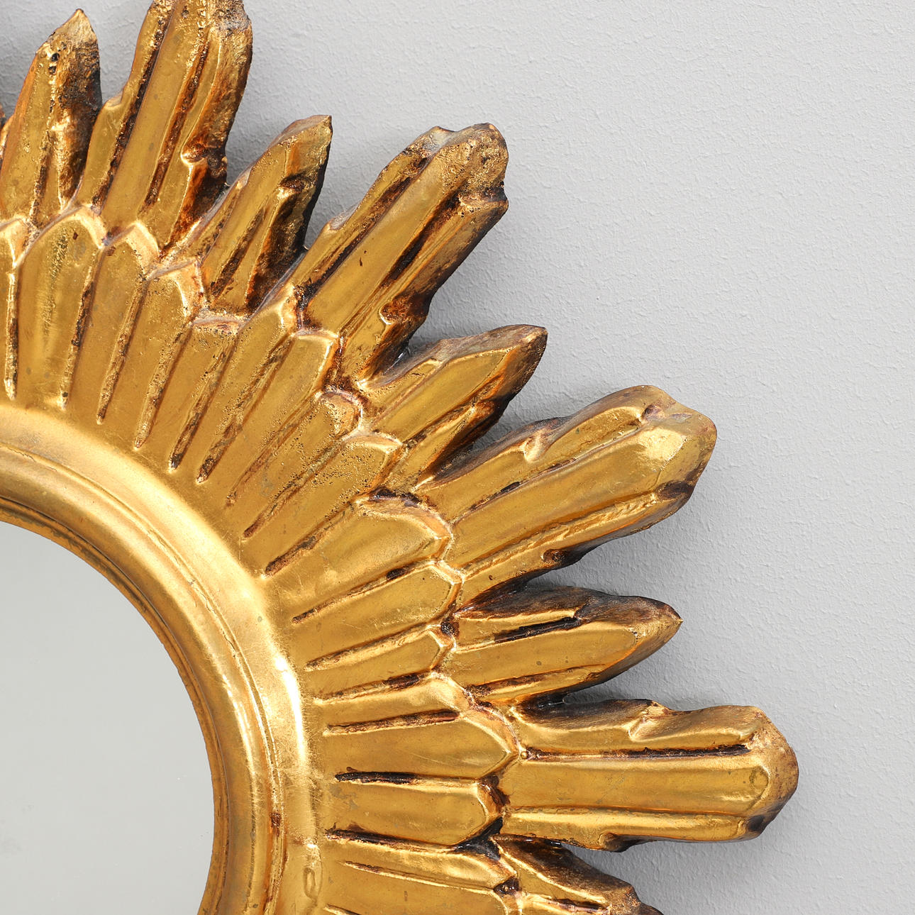 Guldfärgade. Spegelns diam 17, total diam 53 cm.