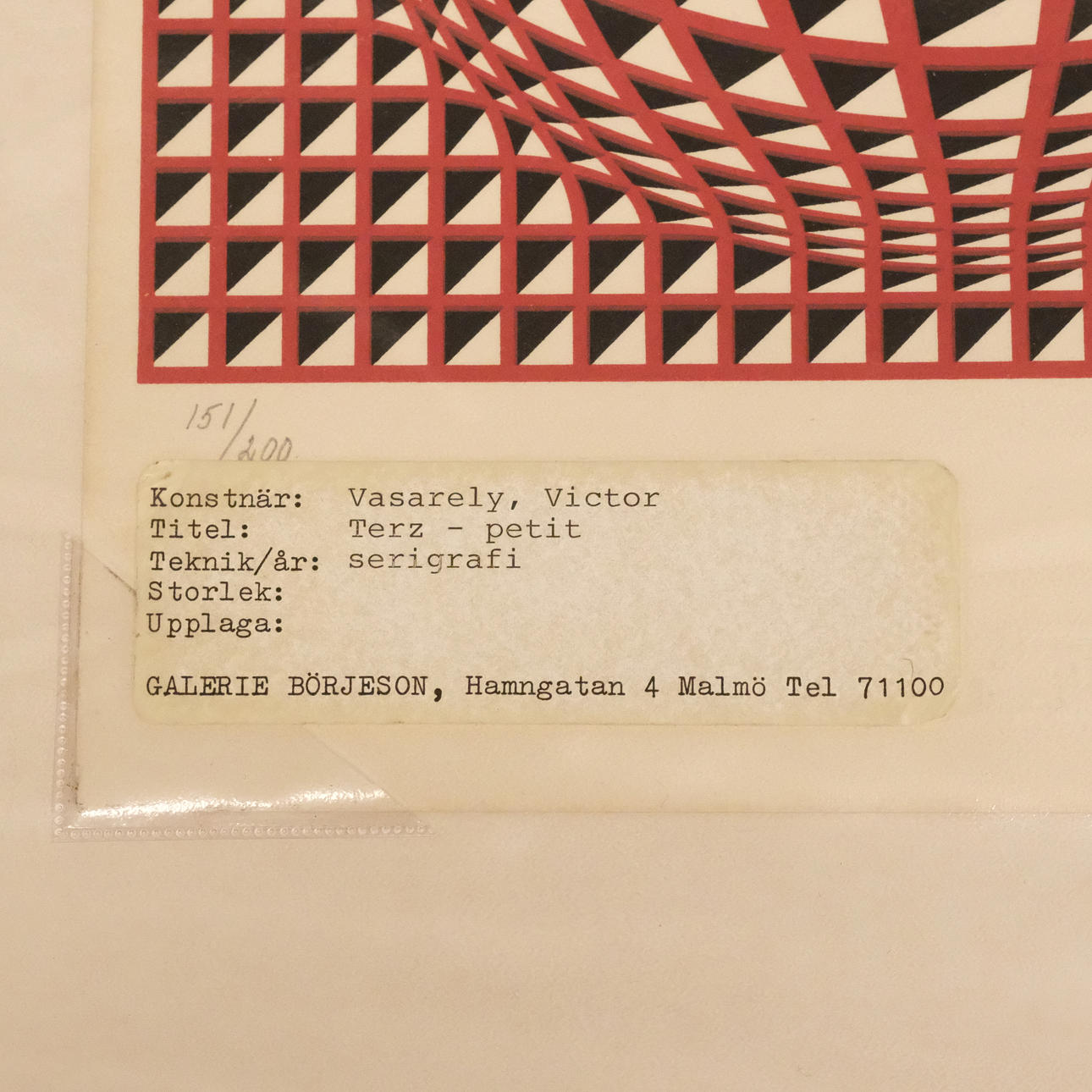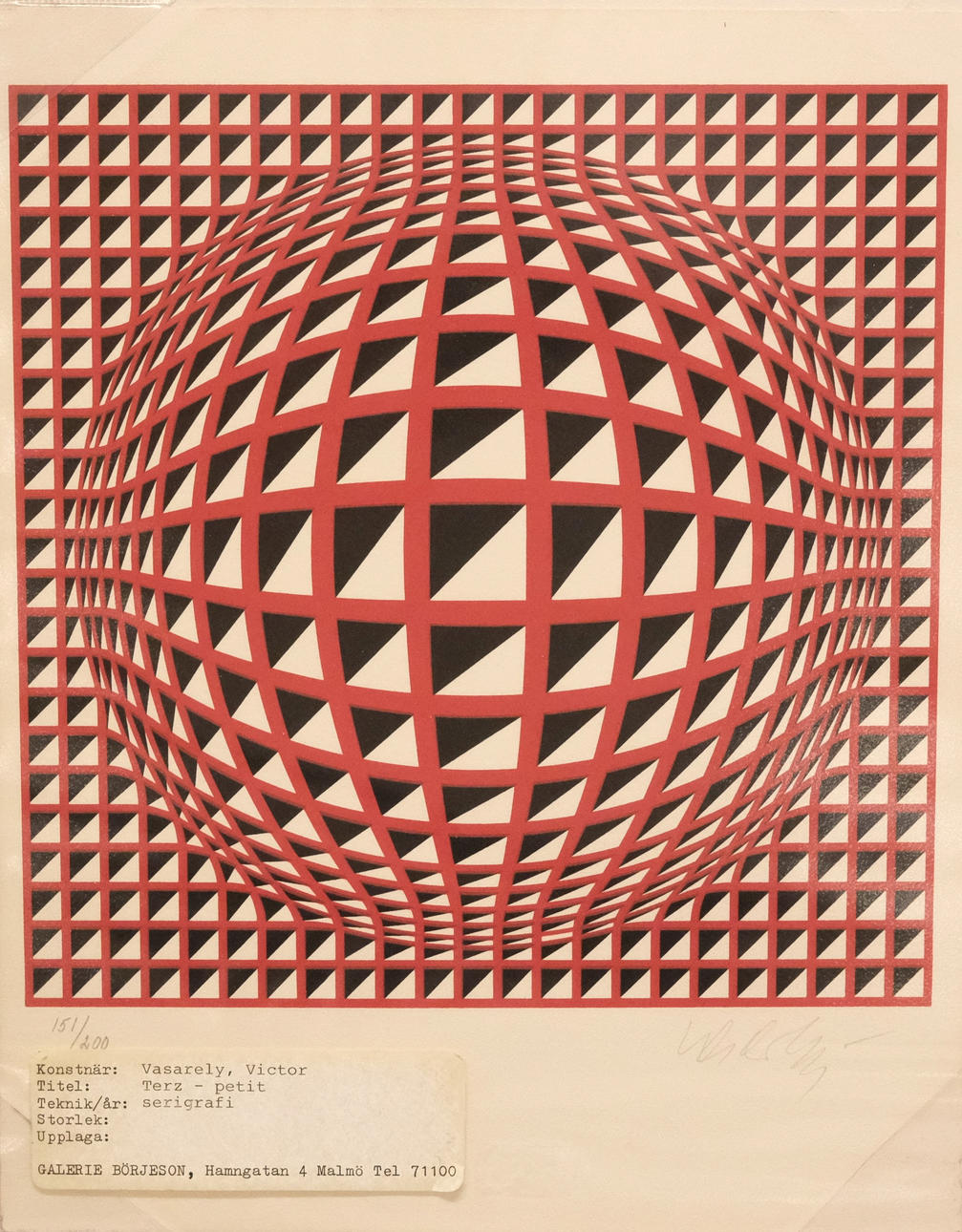 Titel: Terz- petit, teknik: serigrafi, upplaga: 151/200, signerad, mått 23,5 x 29,5 cm.