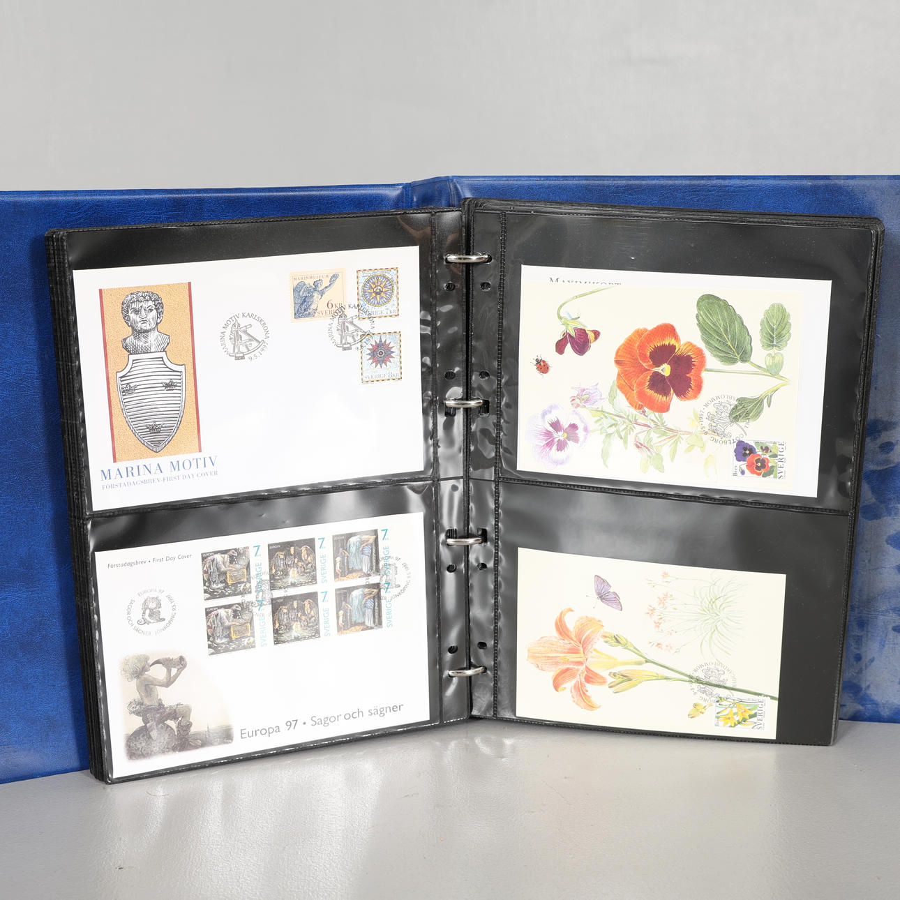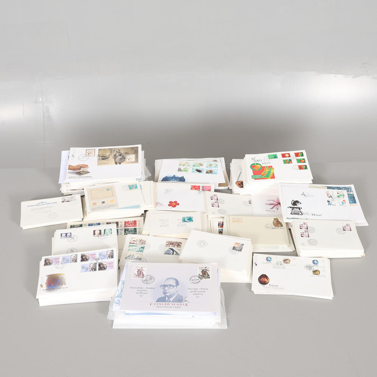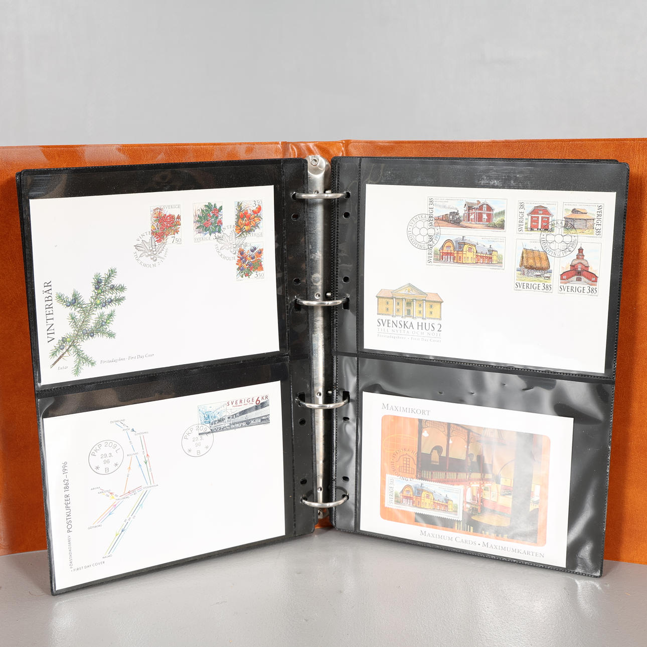 Frimärken stämplade, Förstadagsbrev, Vykort, Maximikort, även utländska medföljer