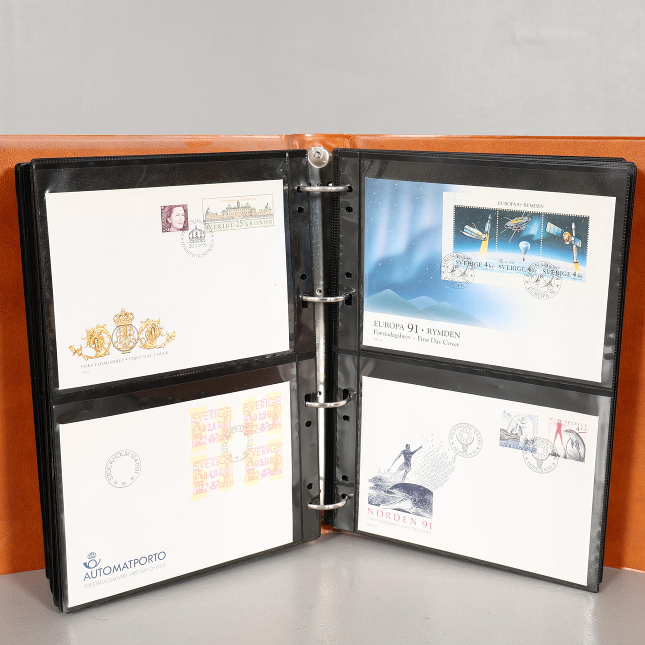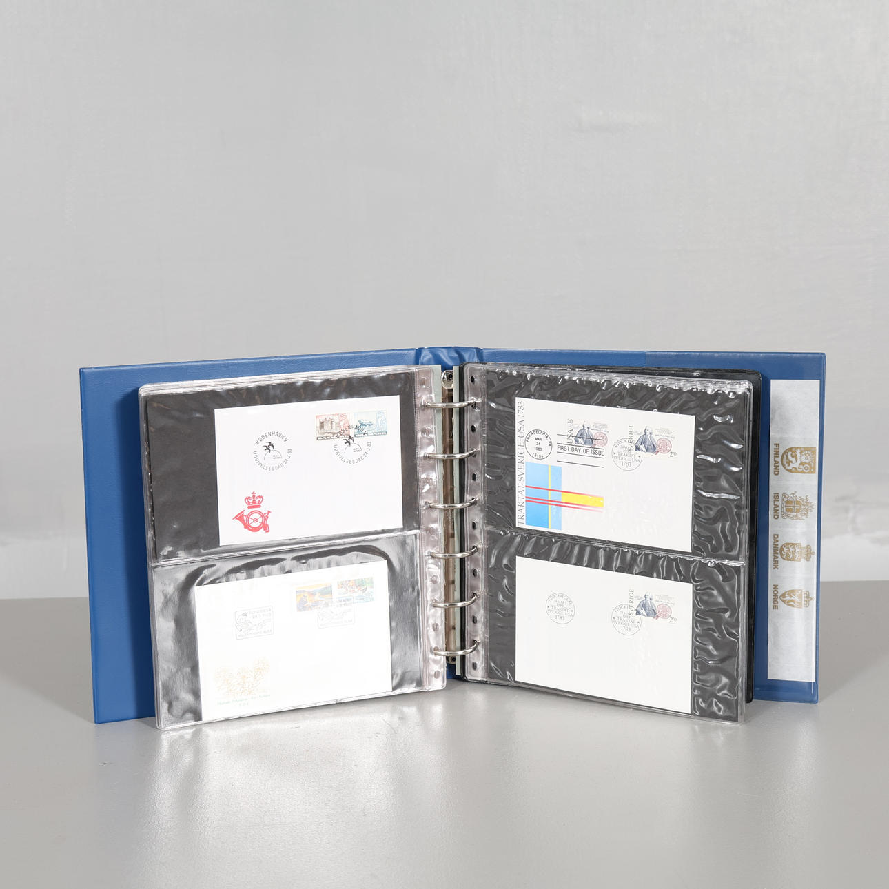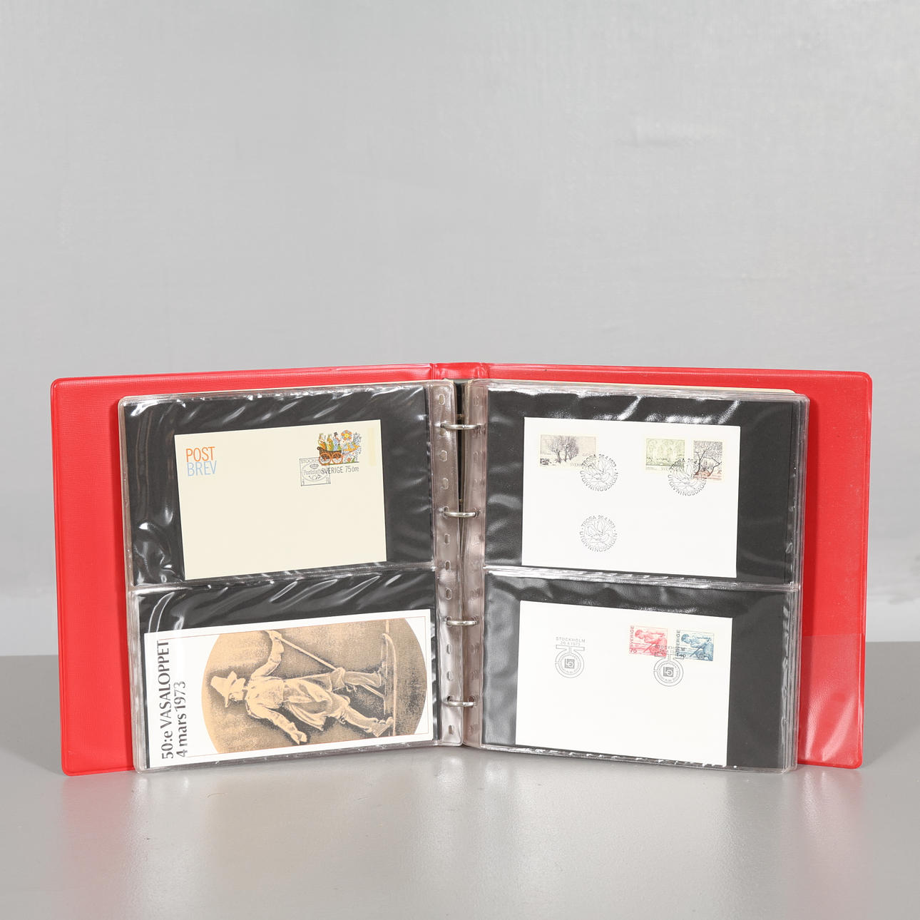 Frimärken stämplade, Förstadagsbrev, Vykort, Maximikort, även utländska medföljer